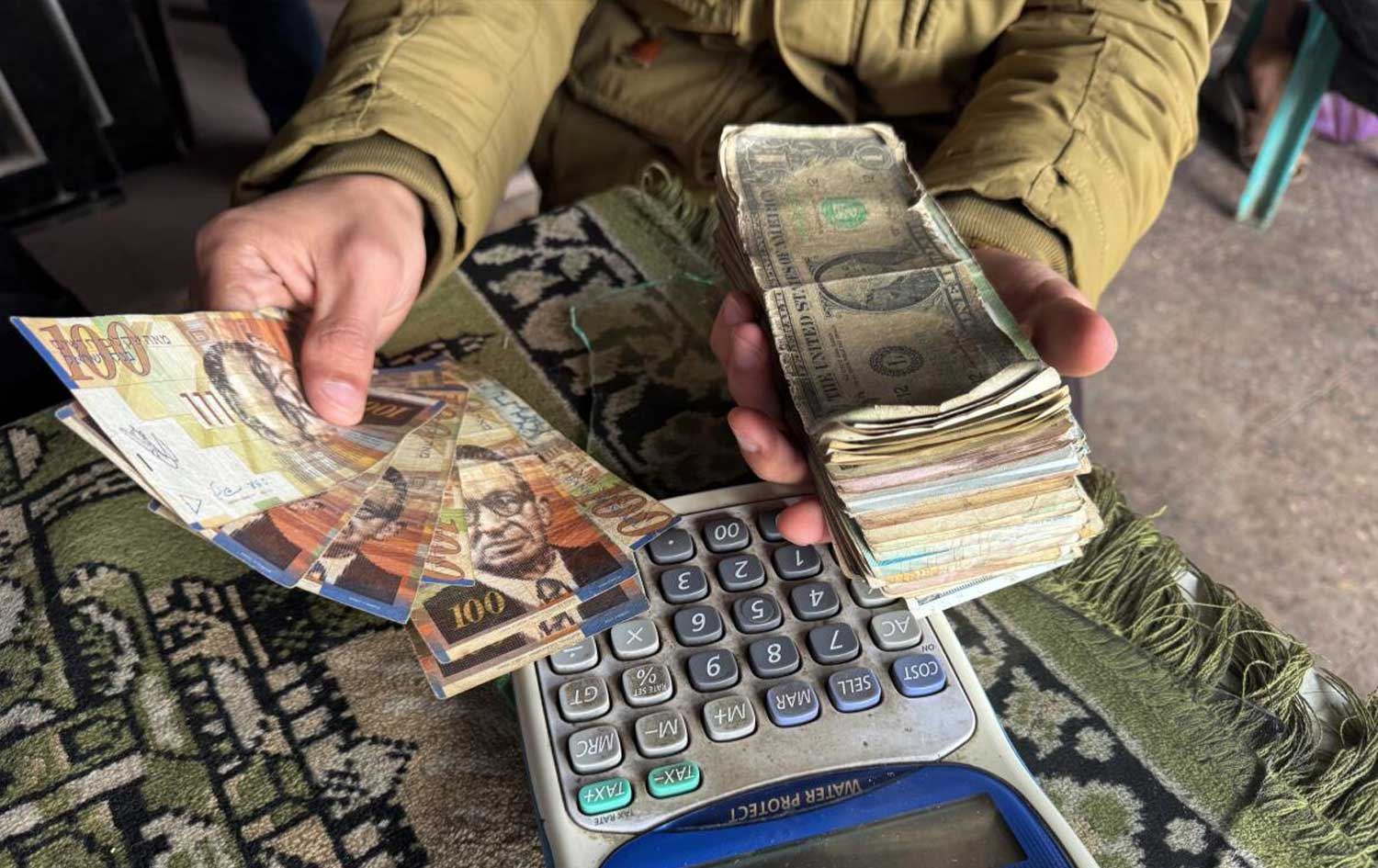 محەممەد عەرماوی، فەرمانبەرە و مووچەکەی لە دەسەڵاتی فەڵەستینی وەردەگرێت و دەڵێت: "مووچەکانمان لە سەرەتای جەنگەوە کەم بووەتەوە، بەهۆی ئەو قەیرانە داراییەی رووبەڕووی دەسەڵاتی فەڵەستینی بووەتەوە، تەنیا 70٪ـی مووچەکانمان وەردەگرین. کاتێک مووچەکان دەچنە سەر هەژماری بانکەکان، ناتوانین وەریانبگرین، چونکە داخراون، بۆیە پەنا دەبەینە بەر مامەڵەکردن لە رێگەی نووسینگەکانی ئاڵوگۆڕی دراو، ئەوانیش کرێیەکی زۆرمان لێوەردەگرن، کە 25% تاوەکو 30% دەبێت. بە لەبەرچاوگرتنی ئەو گرانییەی تێیدا دەژین، مووچە تەنیا بەشی چەند رۆژێکی کەمی فەرمانبەران دەکات."