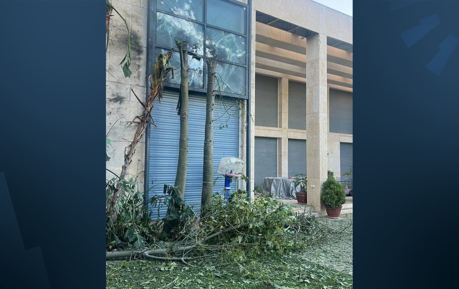 لە دیمەنەکەدا دەردەکەوێت، شووشەی پەنجەرەی ژووری خەوتنی نەتەنیاهوو لەنێو باخچە و مەلەوانگەکەدا کەوتووە.