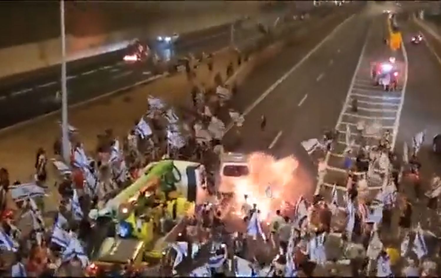 لە خۆپێشاندانی دژی هەموارەکانی دەسەڵاتی دادوەری، لە شاری جافای نزیک تەلئەڤیڤ لە ئیسرائیل، ئۆتۆمبێلێک خۆی بە نێو خۆپێشاندەراندا کرد و لە ئەنجامدا سێ کەس بە سووکی برینداربوون.