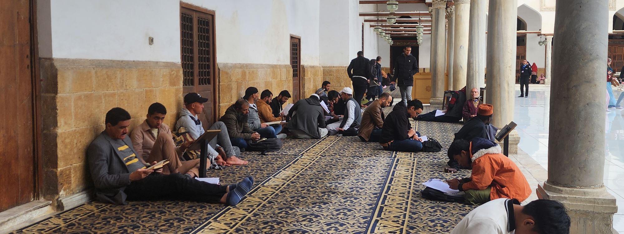 کاتێک دەچیتە نێو مزگەوتە دێرینەکەی قاهیرە، مزگەوتی ئەزهەر، دوای تێڕامان لە بینا و منارە و بەرد و دیوار و تەلارسازییەکەی، هەنگاوێک دەچیتە نێو حەوشە و میحرابەکەیەوە، بە سەدان خوێندکار دەبینی، خەریکی خوێندنی وانەکانیانن، بەشێک گوێیان بۆ ئیمام راگرتووە، کۆمەڵە ژنێکیش قورئانی پیرۆز لەبەر بۆ مامۆستا دەخوێننەوە، بەشێکیش خەریکی نوێژ و نزان.