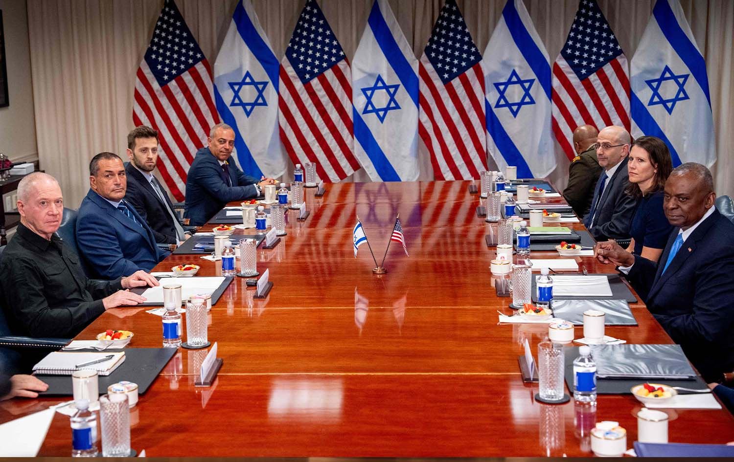كۆبوونەوەی وەزیرانی بەرگریی ئەمریکا و ئیسرائیل لە واشنتن و شاندی هەردوولا. وێنە: AFP