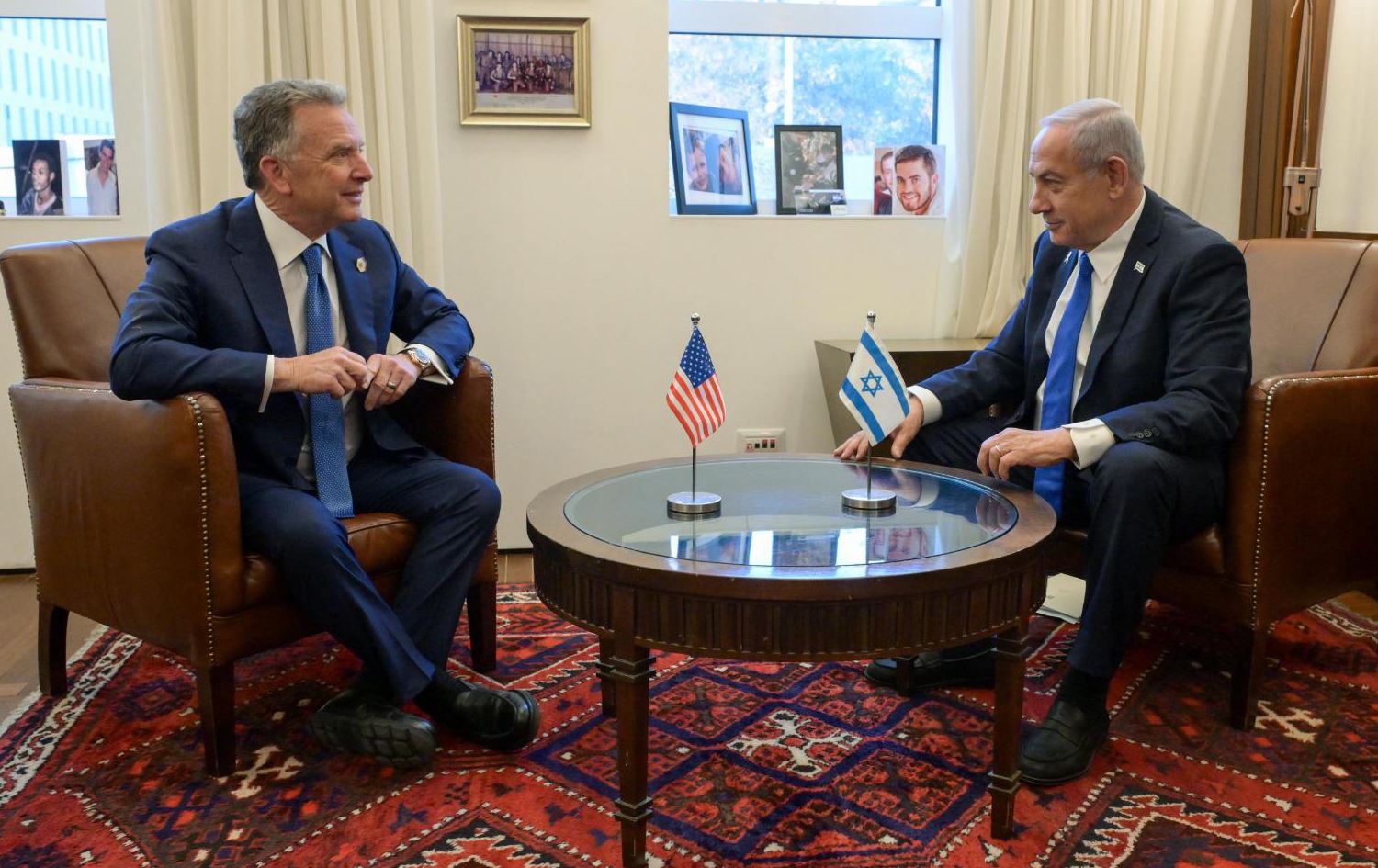 کۆبوونەوەی بنیامین نەتەنیاهوو و ستیڤن پیتکۆڤ. وێنە: هەژماری سەرۆکوەزیرانی ئیسرائیل لە ئێکس.