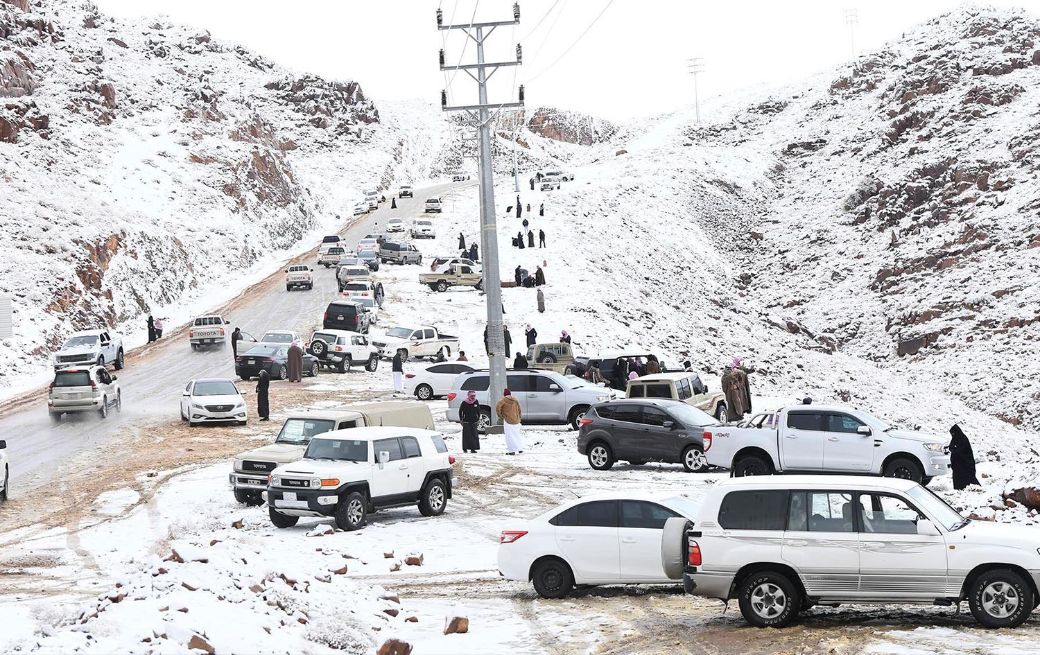 هەر لە رۆژی سێشەممەوە شەپۆلێکی بەفربارین چیای لووز-ی لە شاری تەبووکی باکووری رۆژئاوای سعودیەی گرتەوە و بە سەدان گەشتیار لە سەرتاسەری سعودیە روویان لە شاری تەبووک و چیای لووز کرد.