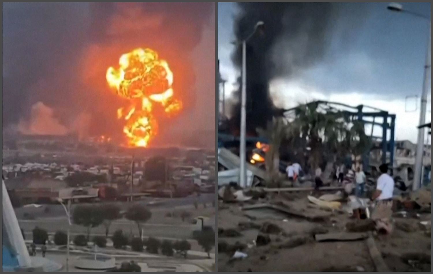 لەدوای هێرشەکان، دووکەڵ بە ئاسمانی شاری حودەیدەوە بەرزبووەوە.