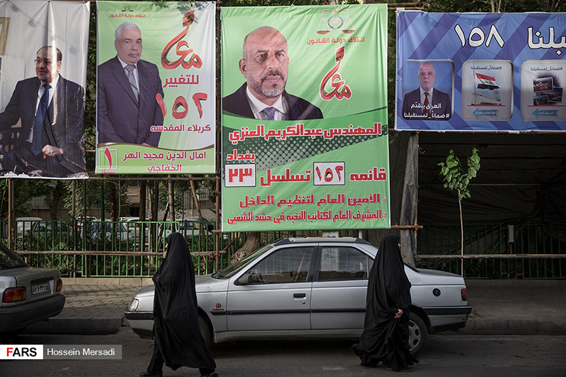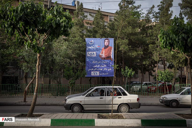 هەڵبژاردن لە عێراق بەڕێوەدەچێت، بەڵام شەقام و کۆڵانەکانی ناوچەی دەوڵەت ئاباد لە تارانی پایتەختی ئێران بە پۆستەری کاندیدان تەنراون.