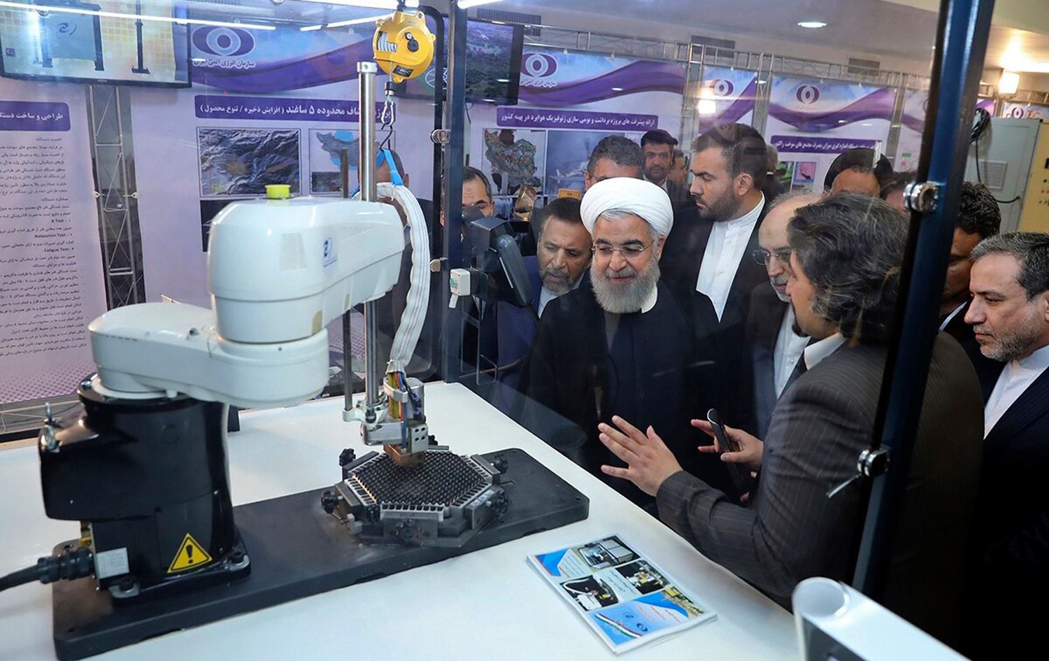 حەسەن رووحانی سەرۆککۆماری ئێران گوێ بۆ تیمێک دەگرێت بەرەوپێشچوونەکانی لەبوار چەکی ناوەکی بۆ شیدەکەنەوە. وێنە:AP