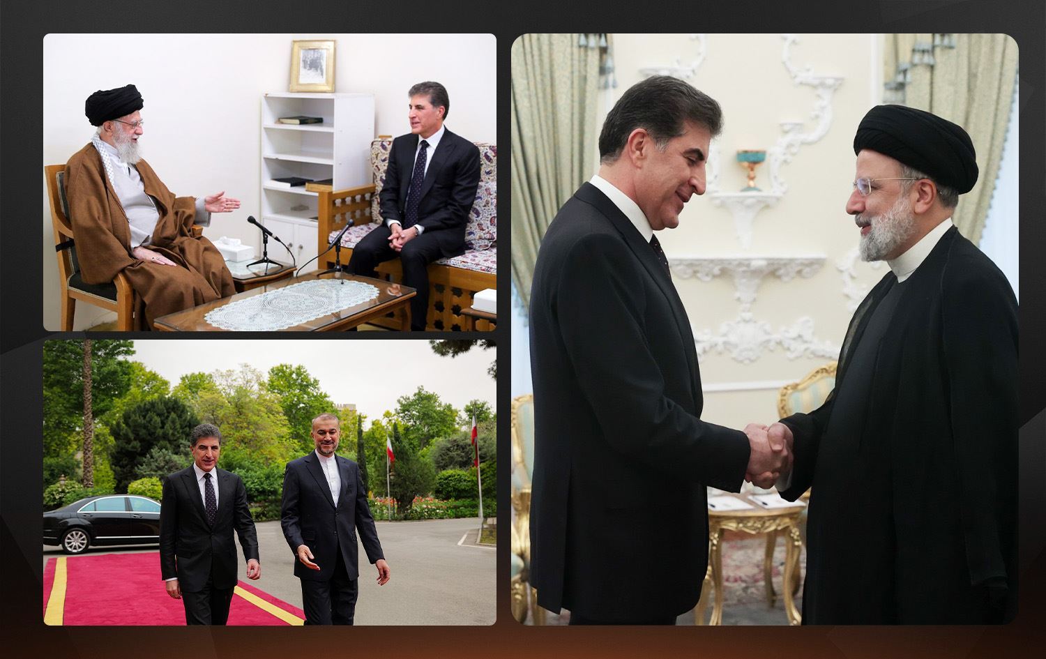 نێچیرڤان بارزانی، سەرۆکی هەرێمی کوردستان رۆژی یەکشەممە 5 ی ئایاری 2024 بە بانگهێشتێکی فەرمی سەردانی ئێرانی کرد و لەگەڵ عەلی خامنەیی، رێبەری کۆماری ئیسلامی ئێران، ئیبراهیم رەئیسی، سەرۆککۆمار، محەمەدباقر قالیباف، سەرۆکی پەرلەمان، عەلی ئەکبەر ئەحمەدیان، سکرتێری ئهنجوومهنى باڵاى ئاسايشى نيشتمانيى ئێران و چەند بەرپرسێکی دیکەی ئەو وڵاتە کۆبوویەوە.