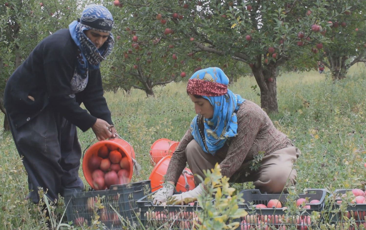 کرێکاران لە باخەکانی سێو، زیاتر بە شێوەی خێزانی ئەو کارە دەکەن. ئەندامانی چەند خێزانێک یەک دەگرن و ژن و پیاو، منداڵ، گەنج و بەساڵاچوو پێکەوە لە باخێکدا کار دەکەن.