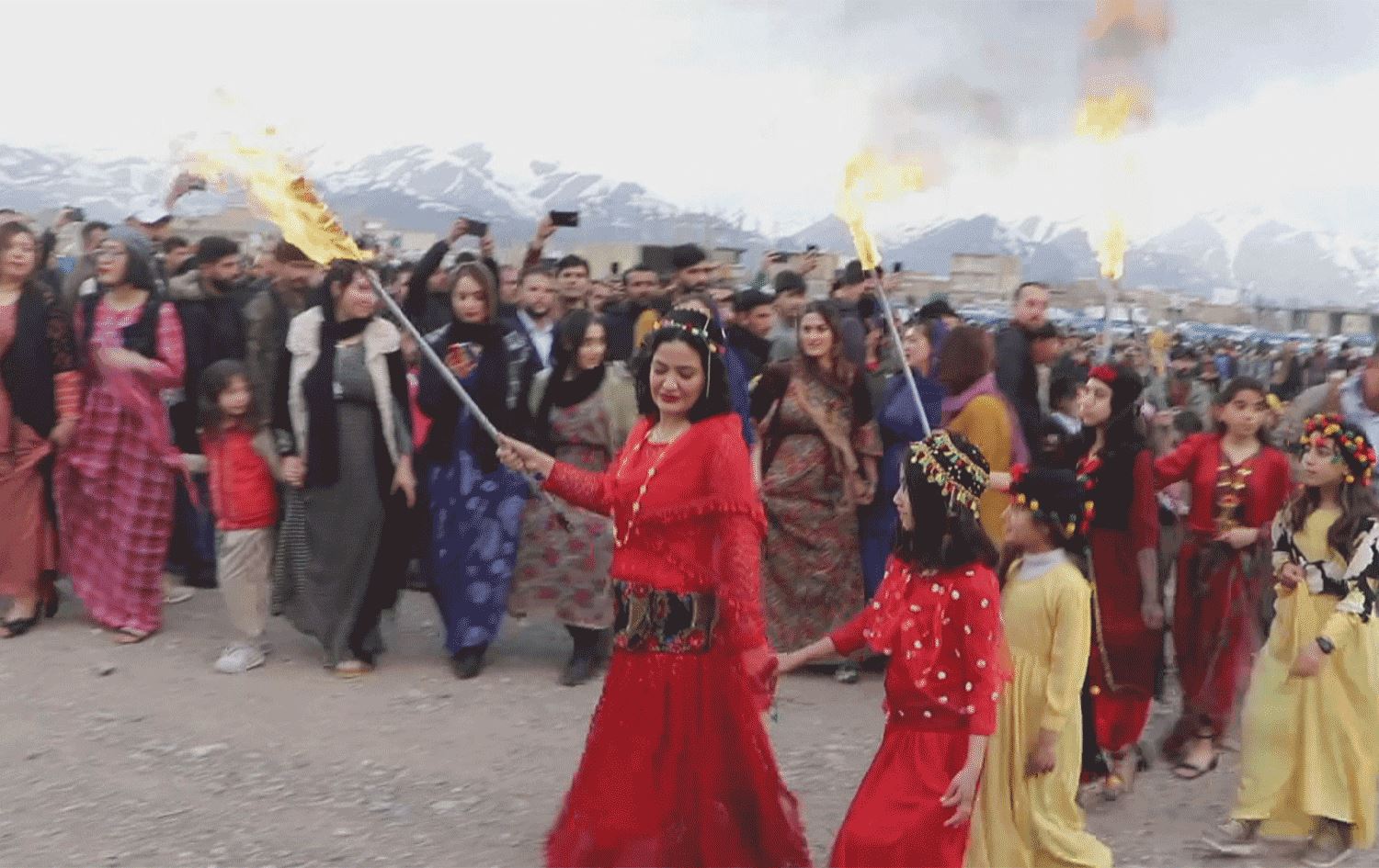 مەشخەڵی رێوڕەسمەکانی نەورۆزی ئەمساڵ لە رۆژهەڵاتی کوردستان زیاتر لە دەستی کچان و ژنان دایە. لە زۆر شوێن لەوانەش مەرگەوەڕی ورمێ، کچان بە جلوبەرگی رەنگاوڕەنگەوە ئاگری نەورۆز دەکەنەوە.