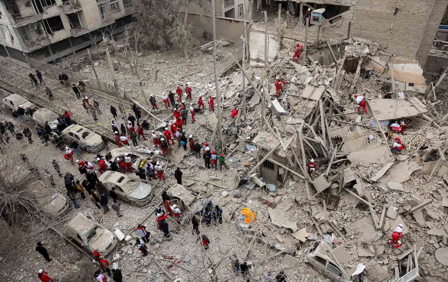 تیمەکانی بەهاناوەچوون لە شوێنێکی بۆردوومانکراو لە تاران بەدوای قوربانییاندا دەگەڕێن. وێنە: Reuters