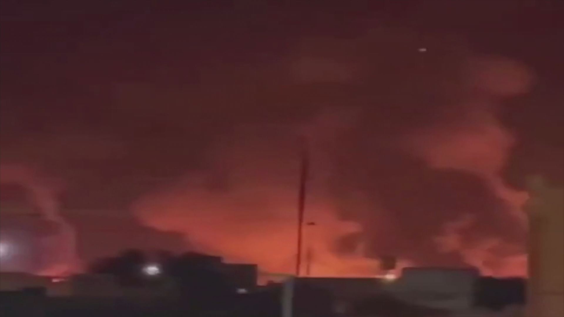 بەگوێرەی ئەو دیمەنانەی کە لەکاتی بۆردوومانەکە بڵاوکراونەتەوە، دووکەڵێکی زۆر چەند ناوچەیەکی بەندەر لەنگە و لەنگەرگەی بەندەرەکە بەرز دەبێتەوە.