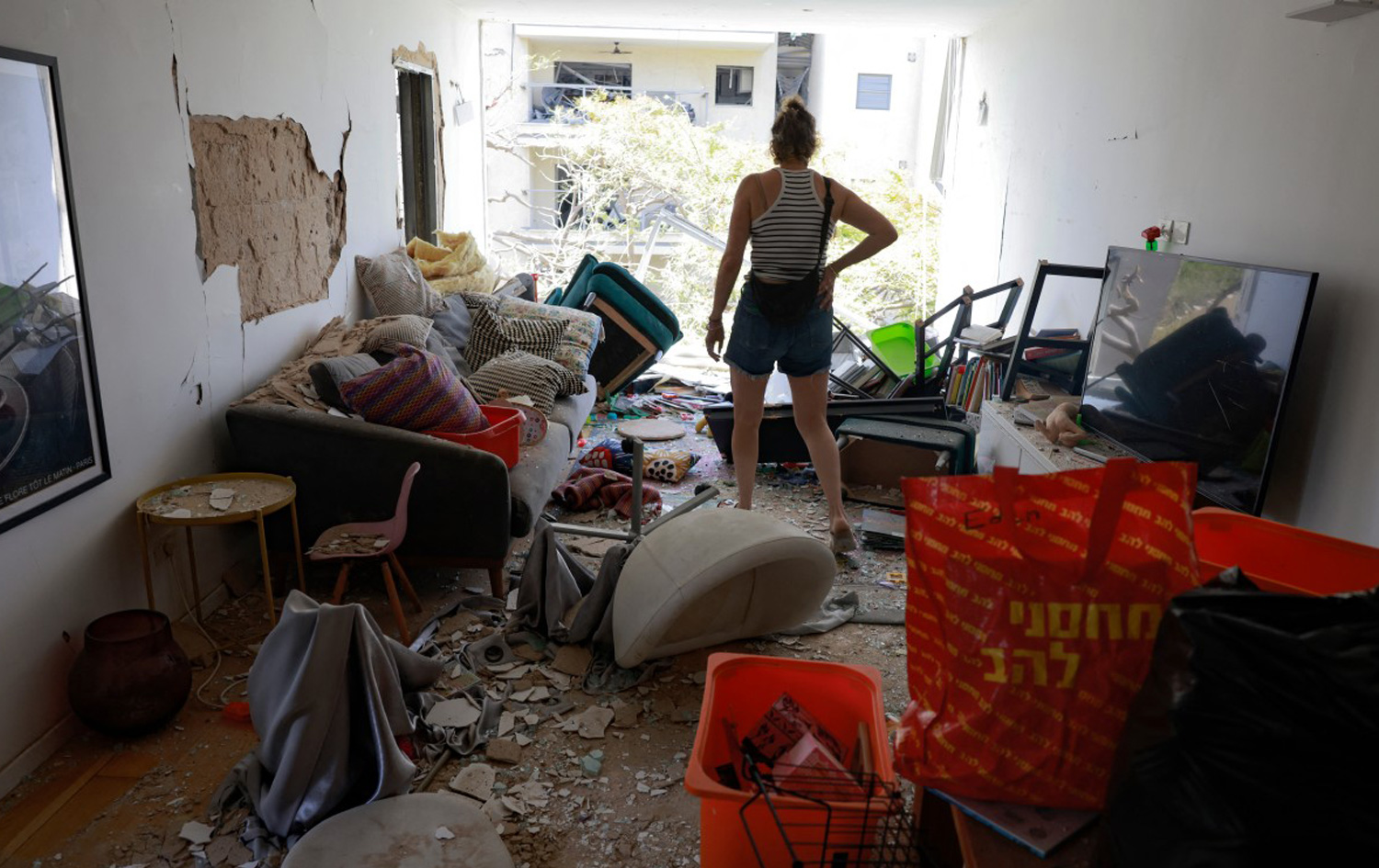 دوای هێرشی ئێران بۆ سەر شاری رامات ئەڤیڤ، کەسێک سەیری زیانی ماڵەکەی دەکات. وێنە: AFP