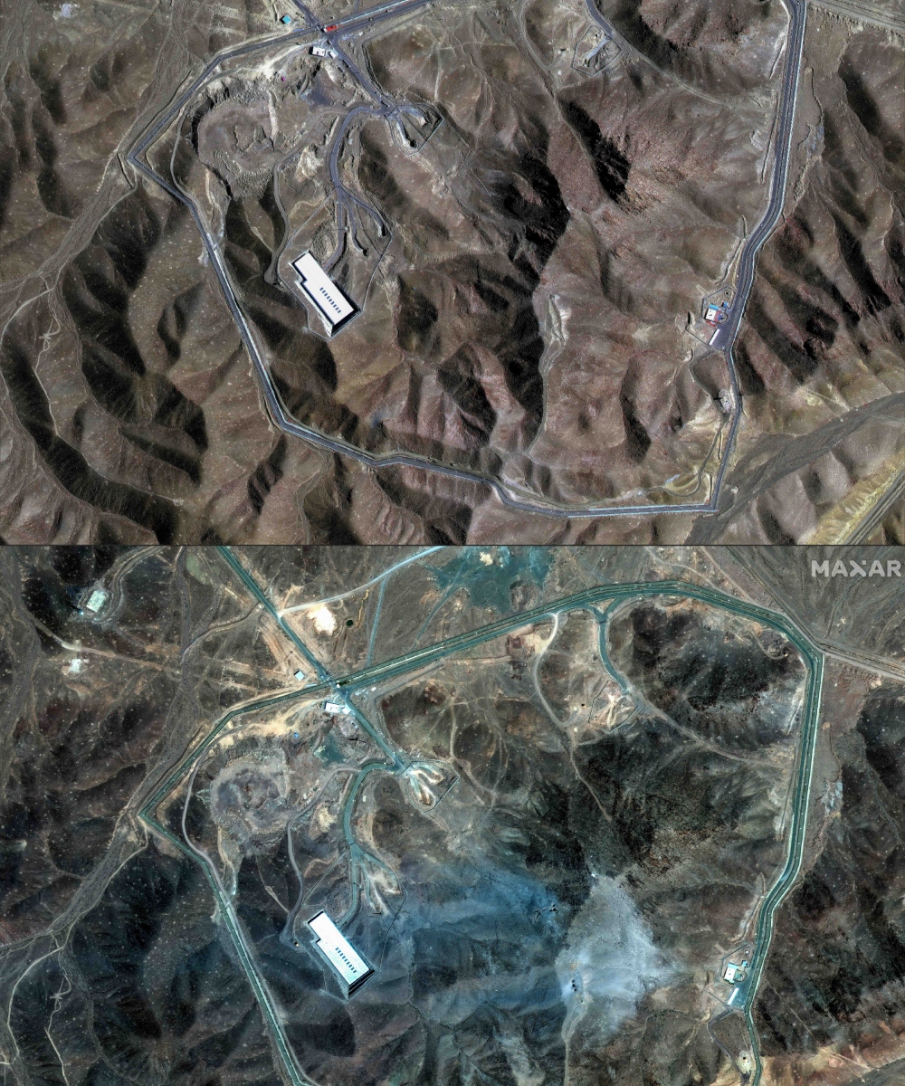 بنکەی ئەتۆمیی فۆردۆ پێش و دوای بۆردوومانەکە. وێنە: AFP