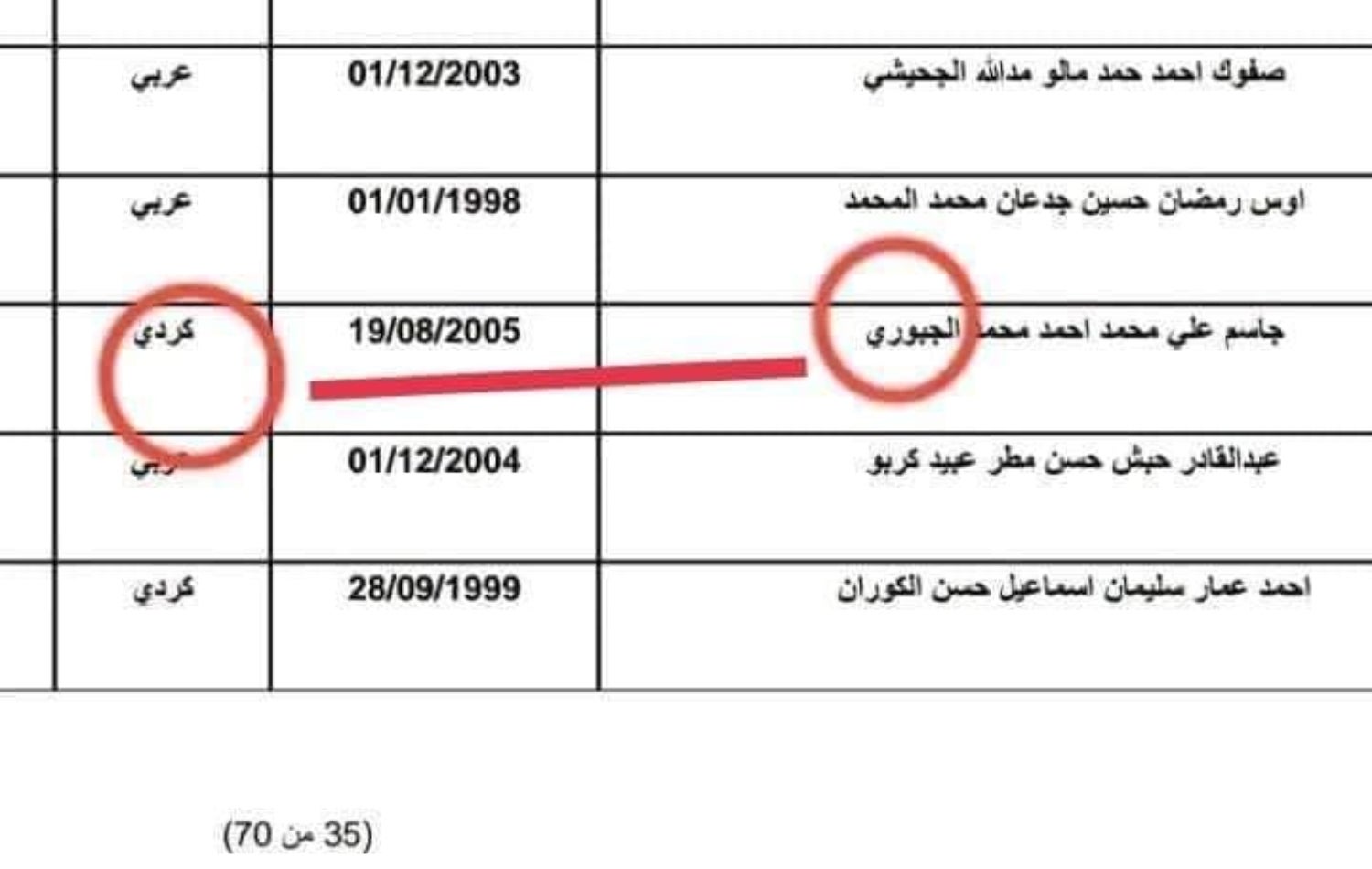وەزارەتی بەرگریی عێراق لیستی ناوەکانیشی کە بە تیروپشک دەرچوون، دیسانەوە بڵاوکردووەتەوە. لەگەڵ ئەوەشدا روونکردنەوەی لەبارەی بڵاوکردنەوەی ناوی عەرەبێک کە بە کورد نووسراوە لەکاتێکدا لە عەشیرەتی جبوورییە و چەندین وێنەی دیکە کە لە سۆشیاڵ میدیا بڵاوبوونەوەتەوە، نەداوە.