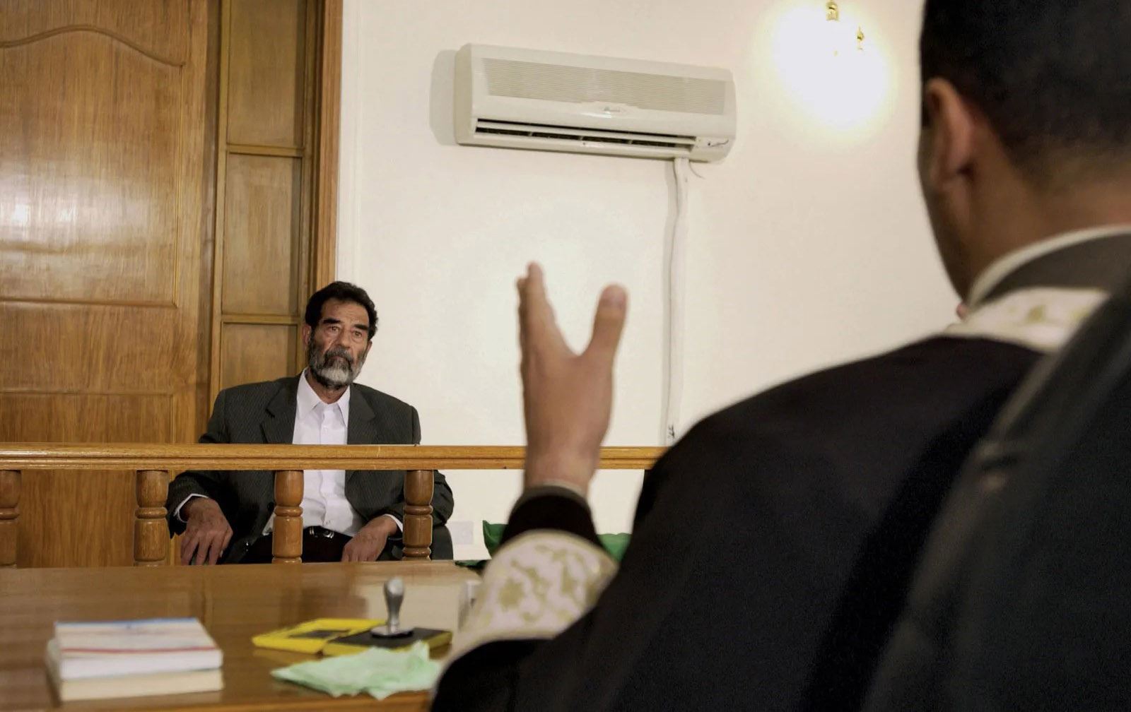 وێنەیەکی سەدام حوسێن لەکاتی دادگاییکردنی. Credit: SSGT D. Myles Cullen, USAF/U.S. Department of Defense