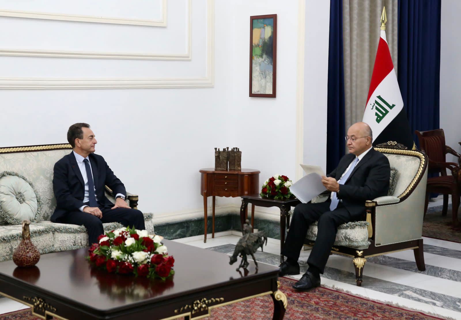 رۆژی یەکشەممە 02-10-2022 بەرهەم ساڵح، سەرۆککۆماری عێراق لە کۆشکی سەلام لە بەغدا لەگەڵ ئیریک شۆڤاڵییە، باڵیۆزی فەرەنسا لە عێراق کۆبووەوە و، نامەیەکی دەستنووسی ئیمانوێل ماکرۆنی پێگەیشت.