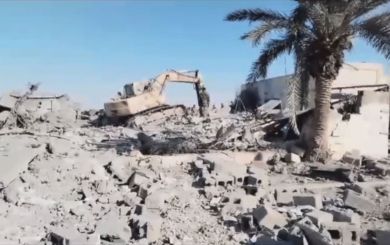 بارەگای وێران و خاپووربووی چەکدارانی حەشدی شەعبی لە قائیم، کە مووشەک و گورزی ئەمریکایان بەرکەوت، یەکەم کاردانەوەی کرداریی ئەمریکا بوو دوای کوژرانی سێ سەربازەکەی.
