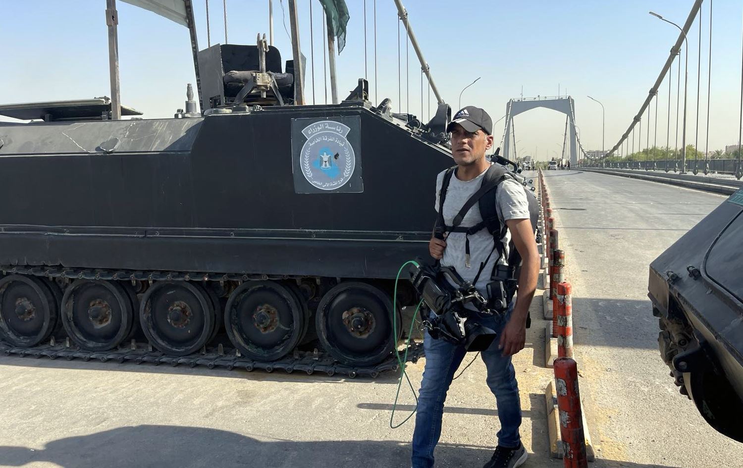 مونتەزر جەعفەر، وێنەگری رووداو لەسەر پردی معەلەق لە ناوچەی سەوزی بەغدا. وێنە: هەڵکەوت عەزیز - رووداو.
