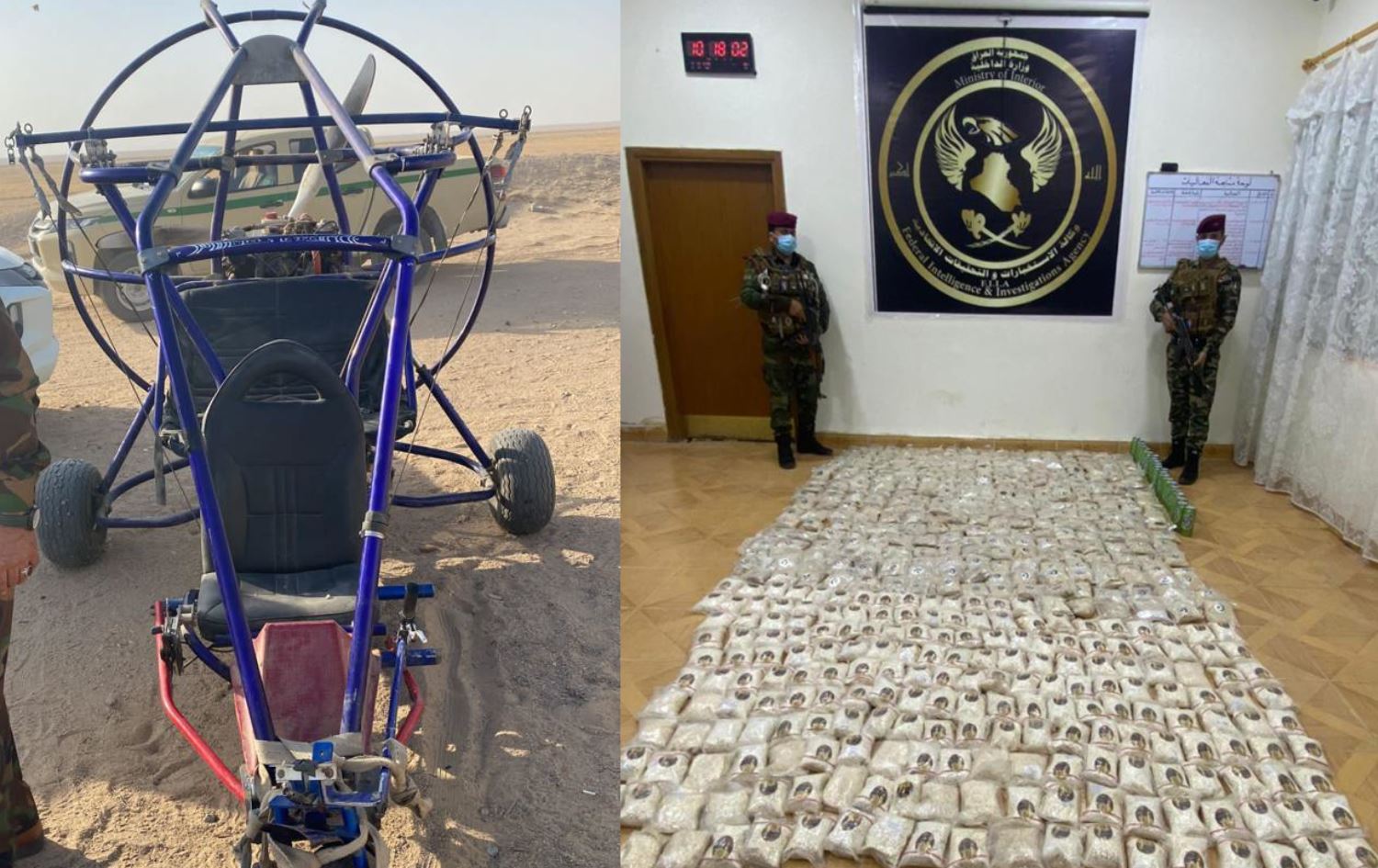 وەزارەتی ناوخۆی عێراق راگەیێندراوێکی لەبارەی هەوڵی بەقاچاخهێنانی حەبی هۆشبەر لە سنووری پارێزگای بەسرە بڵاوکردەوە، کە هەوڵدراوە لە رێگەی پاراگلایدەرەوە یەک ملیۆن حەبی هۆشبەر بگوازرێتەوە.