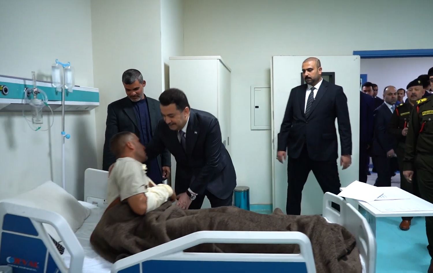 محەممەد شیاع سوودانی، سەرۆکوەزیرانی عێراق سەردانی نەخۆشخانەی سەربازیی حوسێنی لە بەغدا کرد، کە ژمارەیەک لە بریندارانی حەشدی شەعبی و سڤیلیشی تێدایە، ئەوانەی لە هێرشەکەی دووی ئەم مانگەی هێزەکانی ئەمریکا بریندار بوون.