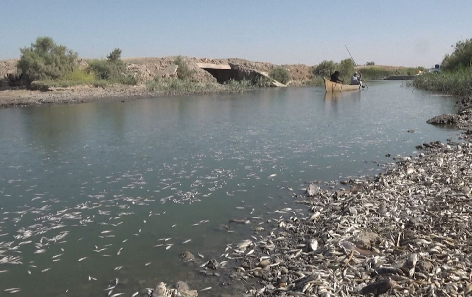 هەزاران ماسى لە کەنارى ئاوى رووبارێکى قەزاى مەجەرى پارێزگاى میسان لەنێوچوون، دیمەنەکە دەرهاوێشتەیەکى دیکەى وشکەساڵییە لە عێراق، کە چوار ساڵە بەرۆکى گرتووە.