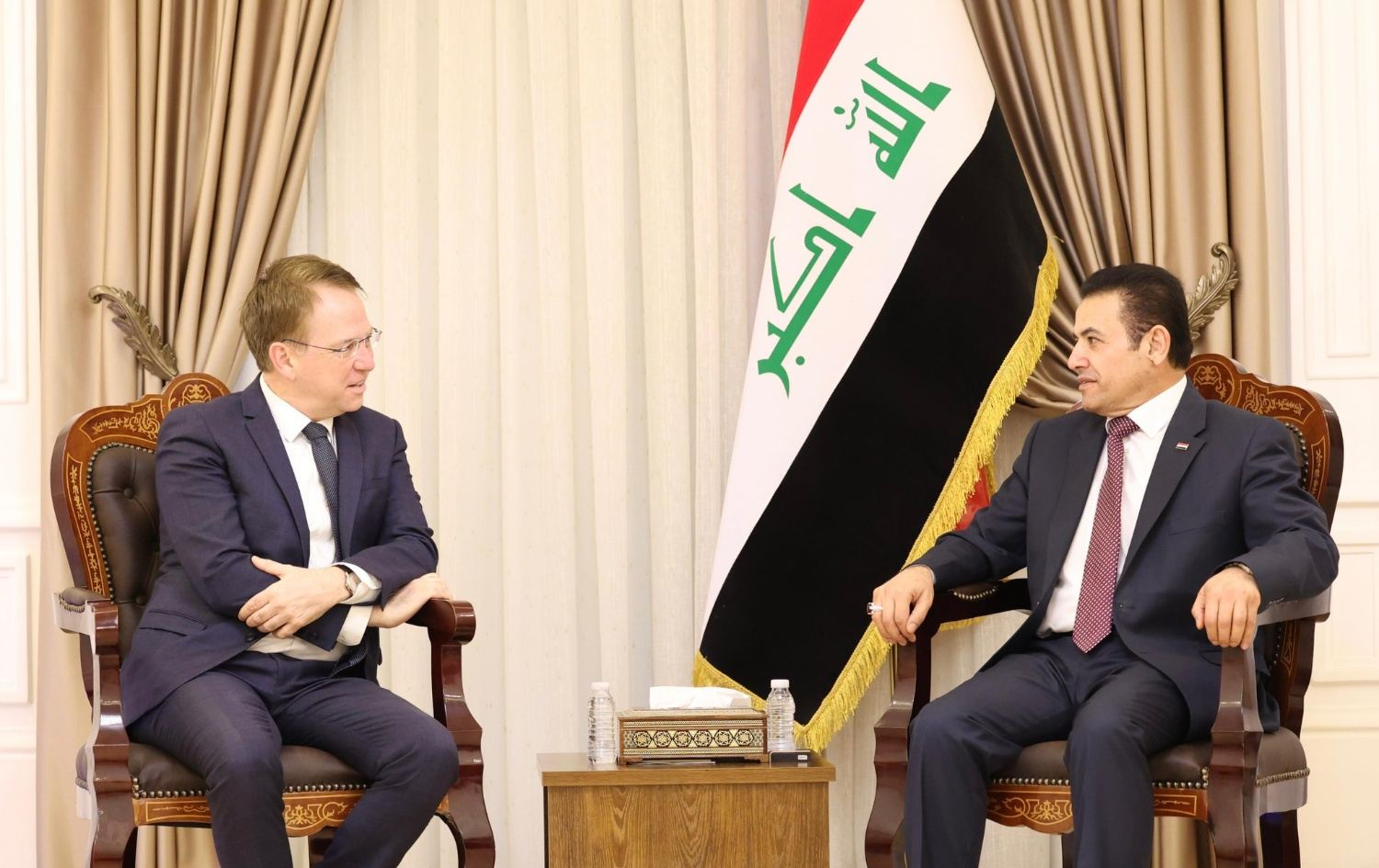 رۆژی یەکشەممە، 5ـی نیسانی 2026، قاسم ئەعرەجی، راوێژکاری ئاسایشی نیشتمانیی عێراق لە بەغدا لەگەڵ پاتریک دورێل، باڵیۆزی فەرەنسا کۆبووەوە و دۆخی سیاسی و ئەمنی و لێکەوتە مەترسیدارەکانی جەنگیان لە ناوچەکە تاوتوێ کرد.