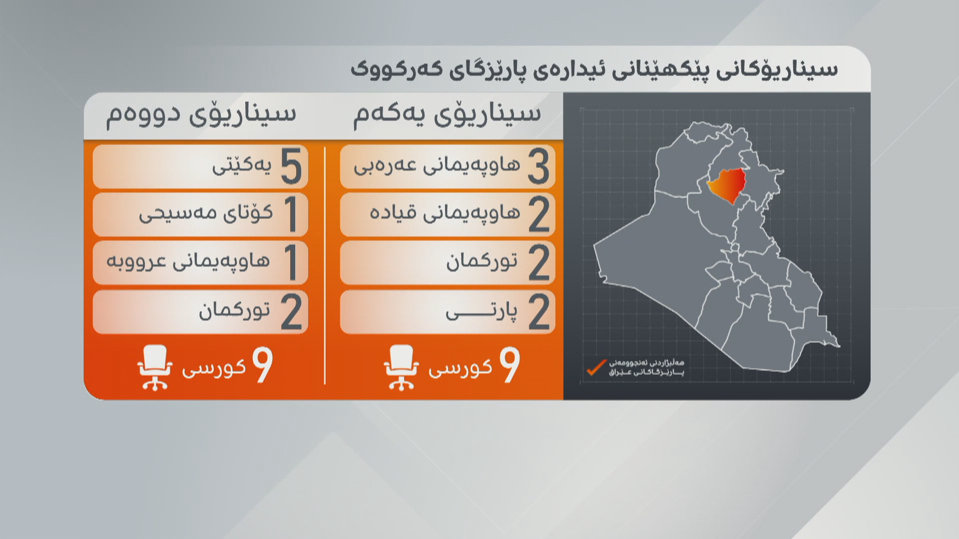 تائێستا دوو سیناریۆ بۆ پێکهێنانی ئیدارەی پارێزگا هەن یەکەم هاوپەیمانیی عەرەبی، قیادە و تورکمان لەگەڵ پارتی رێکبکەون، کە کۆی کورسییەکانیان دەگاتە نۆ کورسی، دووەم هەریەک لە یەکێتی، کورسییەکی کۆتای مەسیحی، عرووبە و بەرەی تورکمانی، کە کۆی کورسییەکانیان دەگاتە نۆ کورسی و ئیدارەی پارێزگا بەڕێوەببەن، بەمەش پۆستی پارێزگار بەشێوەی دەوری لەدەستیان ئاڵوگۆڕی پێبکەن.