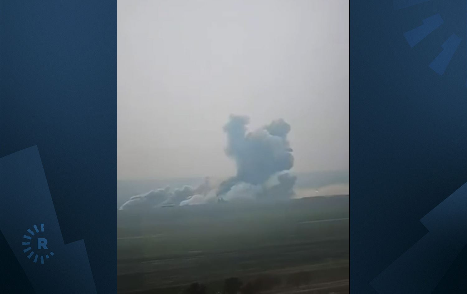 یەکێک لە چەکدارەکانی حەشدی شەعبی کە دوای بۆردوومانەکە گرتەیەکی ڤیدیۆیی بڵاوکردووەتەوە و دەڵێت، "لە کاتی بەربانگ کردنەوەدا لێیانداین."