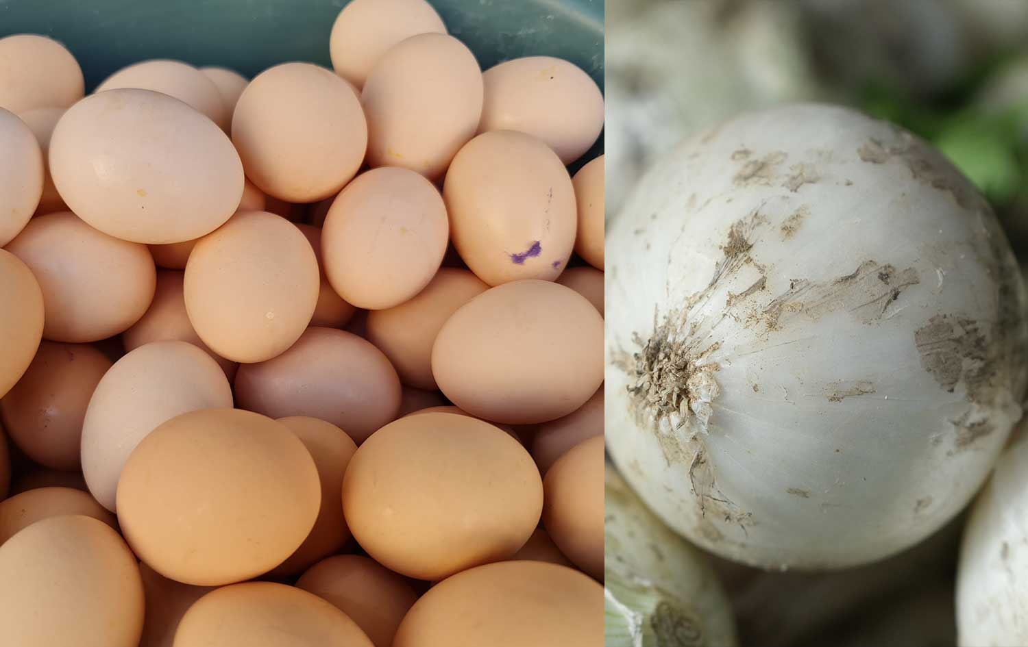 وێنەیەکی پیاز و هێلکە لە بازاڕەکانی هەرێمی کوردستان؛ وێنەکە بۆ روونکردنەوەی هەواڵەکەیە و لەلایەن بڵند تاهیر، فۆتۆجۆرناڵیستی رووداو گیراوە