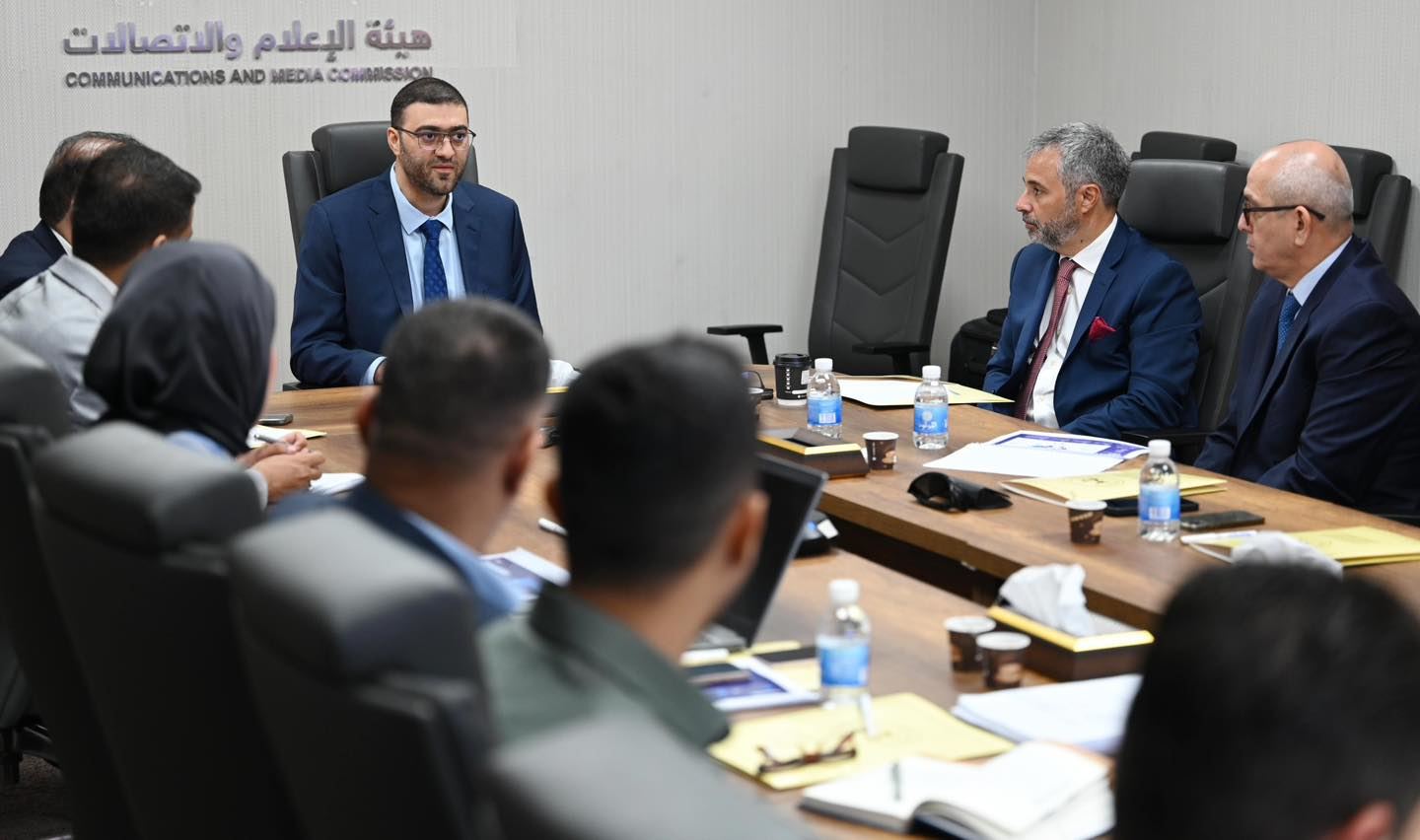 وێنەیەکی کۆبوونەوەکەی سەرۆکی دەستەی راگەیاندن و گەیاندنی عێراق لەگەڵ شاندێکی نوێنەرانی کۆمپانیاکە لە بەغدا