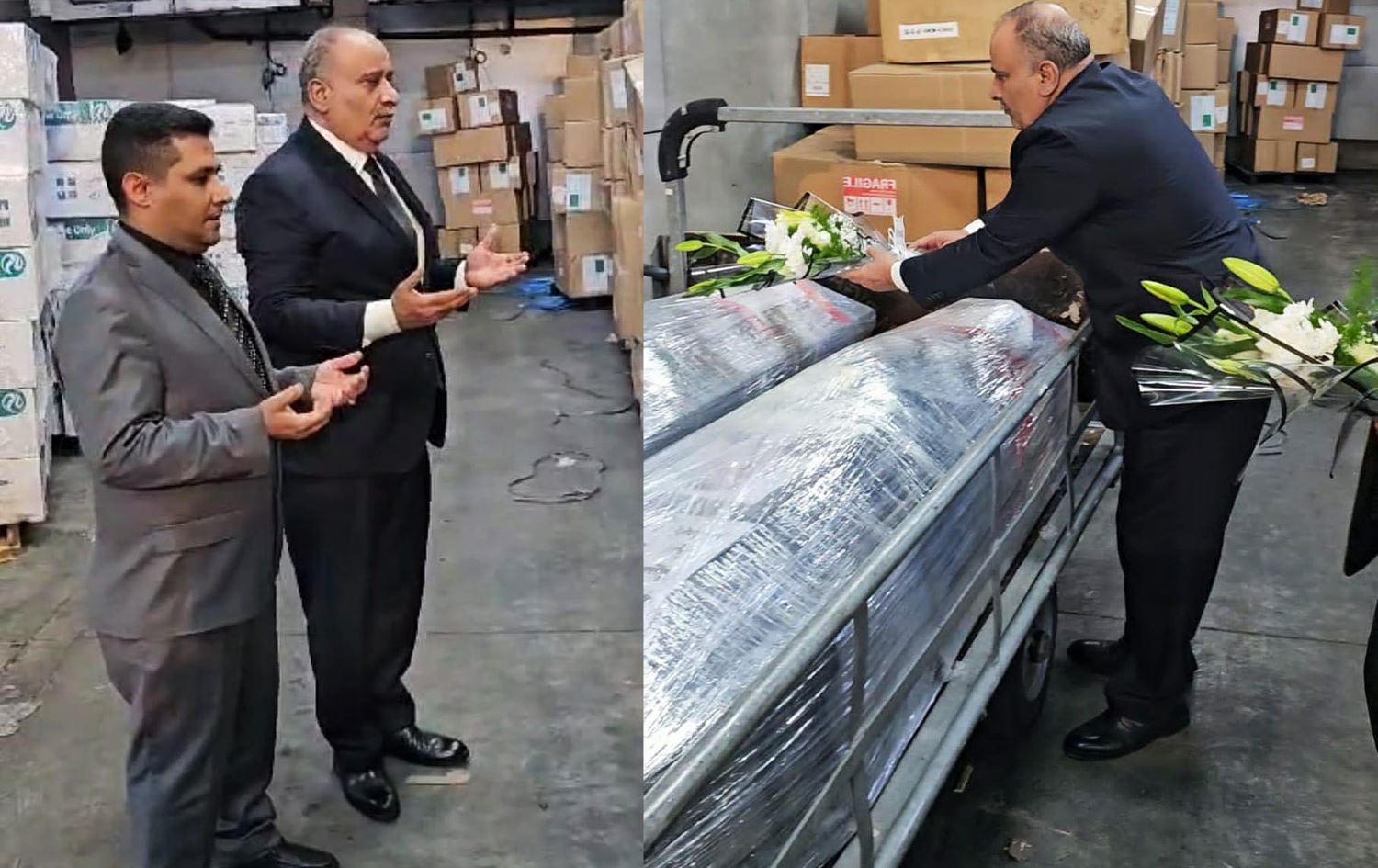 باڵیۆزخانەى یەمەن لە عێراق وێنەى گواستنەوەى تەرمى ئەو چوار کارمەندەى بڵاوکردووەتەوە لە فڕۆکەخانەى بەغداوە بۆ فڕۆکەخانەى عەمان لە ئوردن دەگوازرێنەوە.