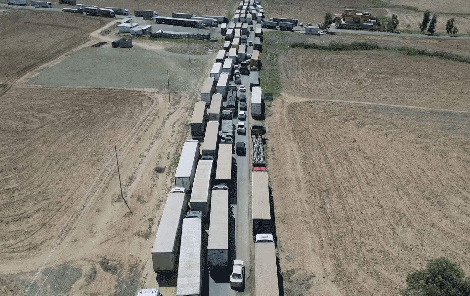 بەدرێژایی نزیکەی 10 کیلۆمەتر بە سێ و چوار سایدی جیاواز، لە خاڵی پشکنینی بەنداوی موسڵ هەزاران بارهەڵگر چاوەڕێی رێگەپێدان دەکەن. شۆفێران دەڵێن زیاتر لە 24 کاژێرە گەیشتوونەتە ئەو خاڵە و لە دوێنێوە تەنیا 100 مەتر چوونەتە پێش.