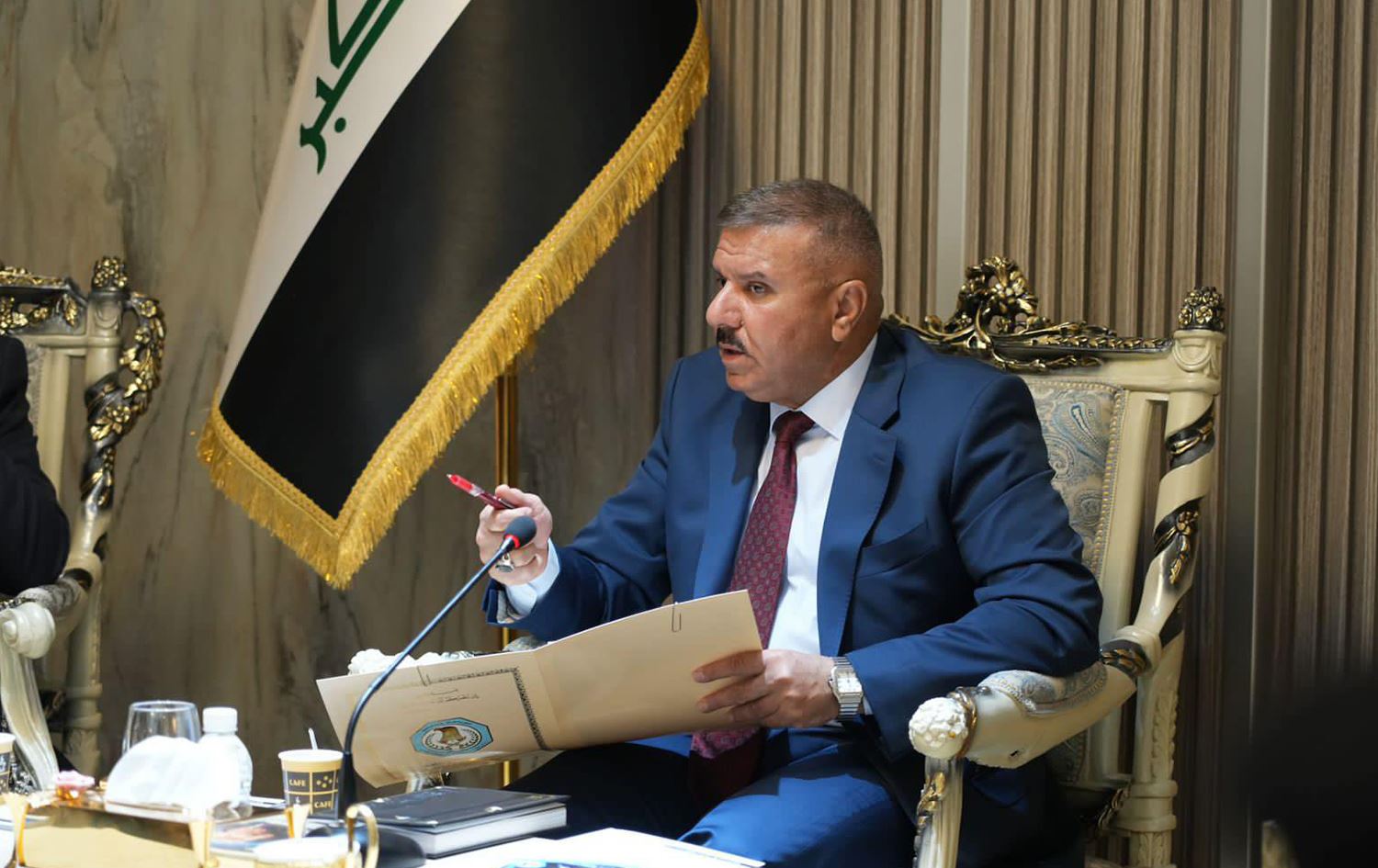 عەبدولئەمیر شمەرى، وەزیرى ناوخۆى عێراق لە دیداریدا لەگەڵ ژمارەیەک لە رۆژنامەڤانان لە بەغدا. وێنە: رووداو