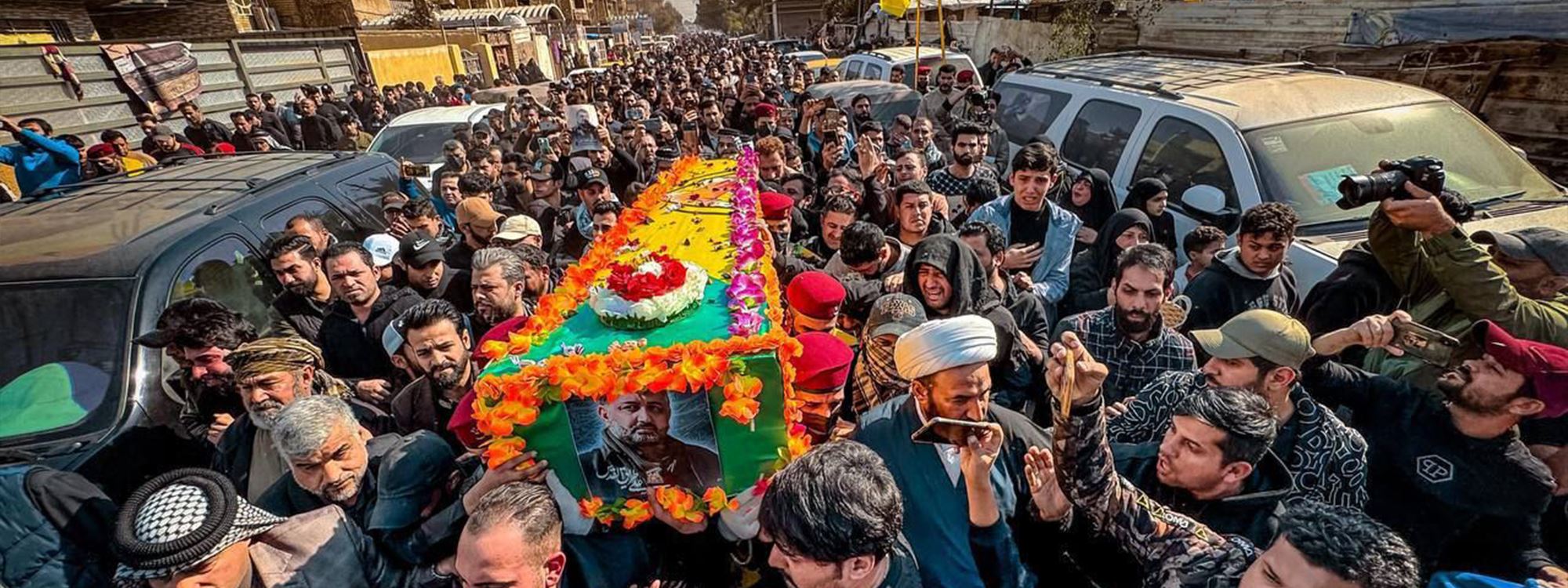 لە رێوڕەسمی بەڕێکردنی تەرمی ئەو سەرکردەیەی حیزبوڵڵای عێراقی، دەیان چەکداری کەتیبەکانی حیزبوڵڵا بە جلوبەرگی تایبەتەوە بەشداربوون.