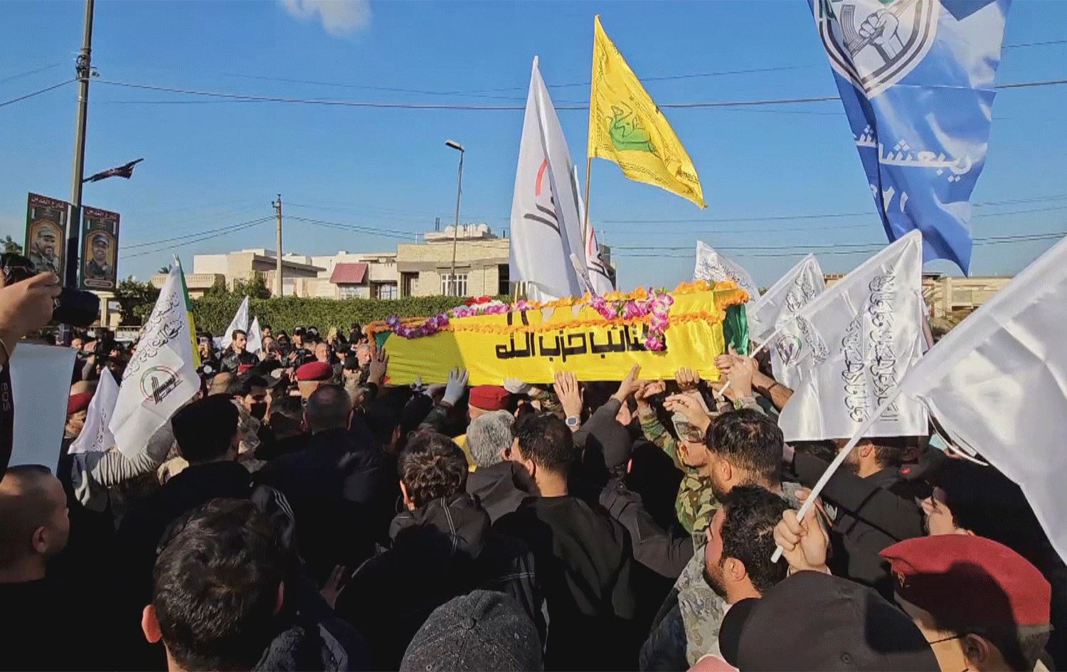 سەرەتای ڤیدیۆکە رێوڕەسمی بەڕێکردنی تەرمی ئەبو باقر ساعدی دەبینن، ئەو فەرماندەیەی حیزبوڵڵا کە لەنێو جەرگەی بەغدا بە مووشەکی ئەمریکی کرایە ئامانج و کوژرا.