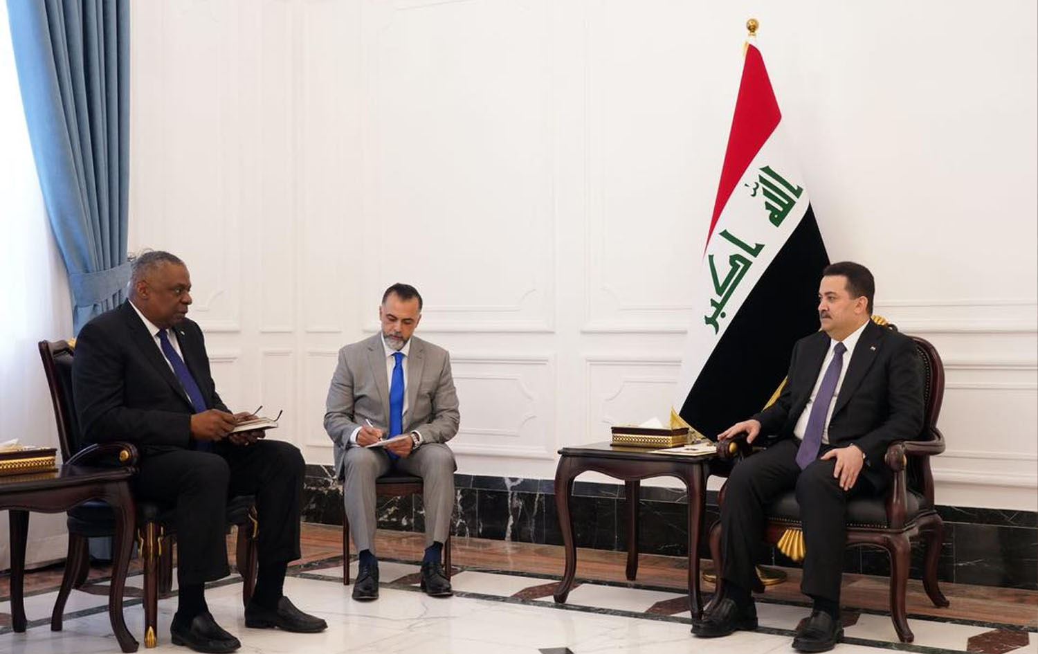 کۆبوونەوەی محەممەد شیاع سوودانی، سەرۆکوەزیرانی عێراق لەگەڵ لۆید ئۆستن، وەزیری بەرگریی ئەمریکا لە بەغدا