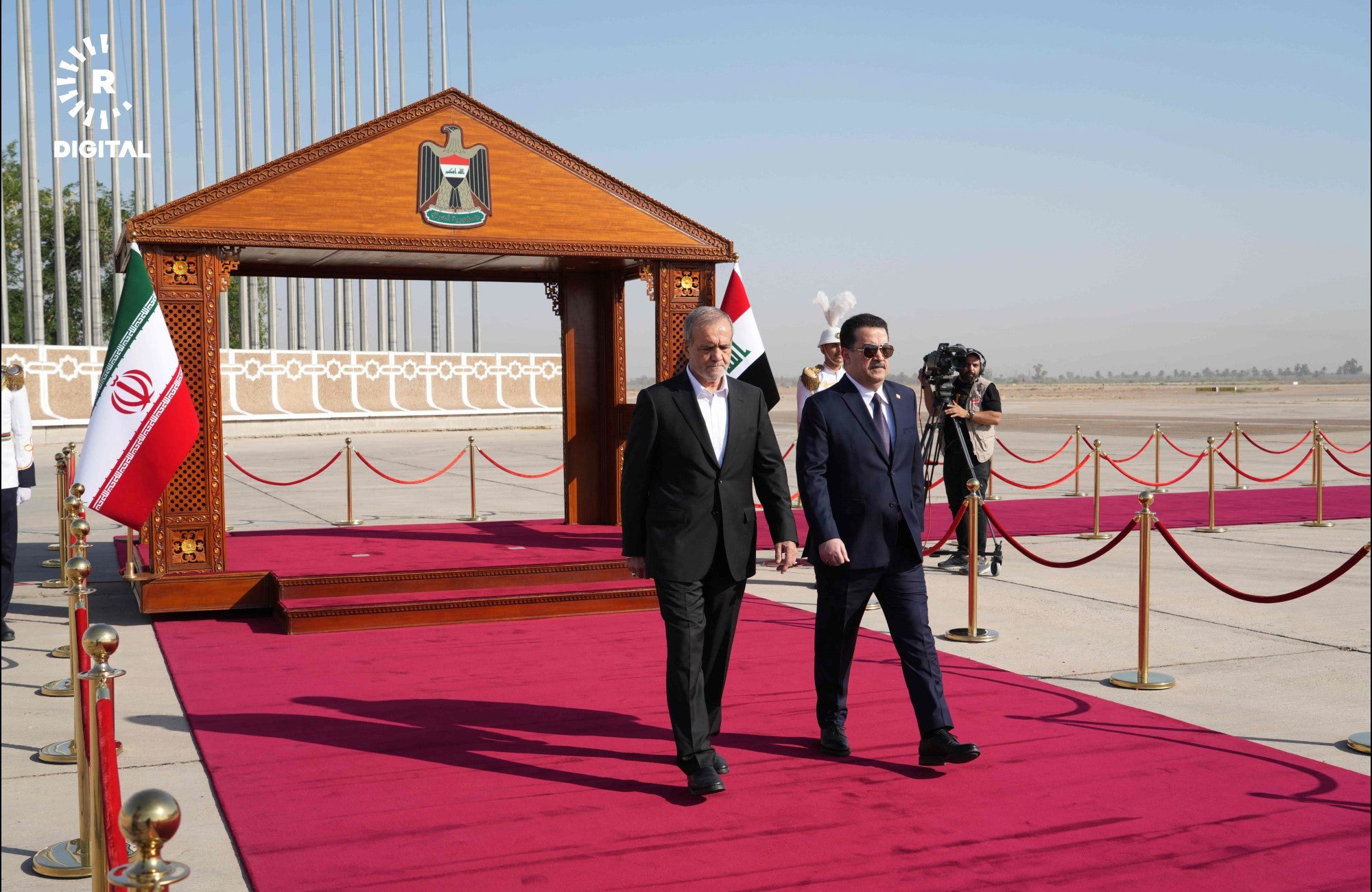 کاژێر 08:00ـی بەیانیی رۆژی 11ـی ئەیلوول فڕۆکەیەکی ئێرانی لە فڕۆکەخانەی بەغدا نیشتەوە، مەسعود پزیشکیان، سەرۆککۆماری ئێران و بەشێک لە بەرپرسانی ئەو وڵاتە لەلایەن محەممەد شیاع سوودانی، سەرۆکوەزیرانی عێراقەوە پێشوازییان لێکرا.