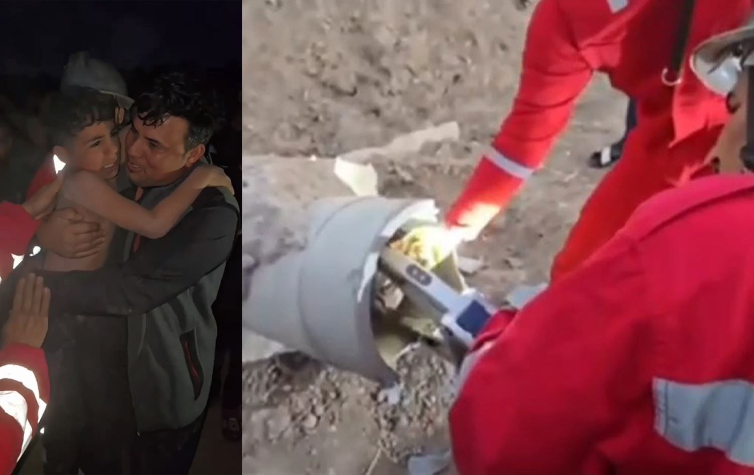 بەڕێوەبەرایەتیی بەرگریی شارستانیی عێراق دیمەنی چۆنیەتیی رزگارکردنی ئەو منداڵەی بڵاوکردووەتەوە لەدوای ئەوەی کە بۆرییە ئاسنەکەیان بڕیوەتەوە.