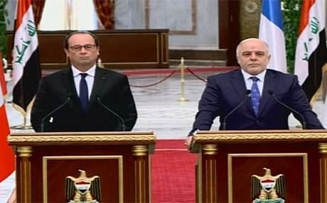 حەیدەر عەبادی، سەرۆكوەزیرانی عێراق و فرانسوا هۆلاند، سەرۆكی فەرەنسا كۆنفڕانسێكی رۆژنامەوانیان سازكرد.