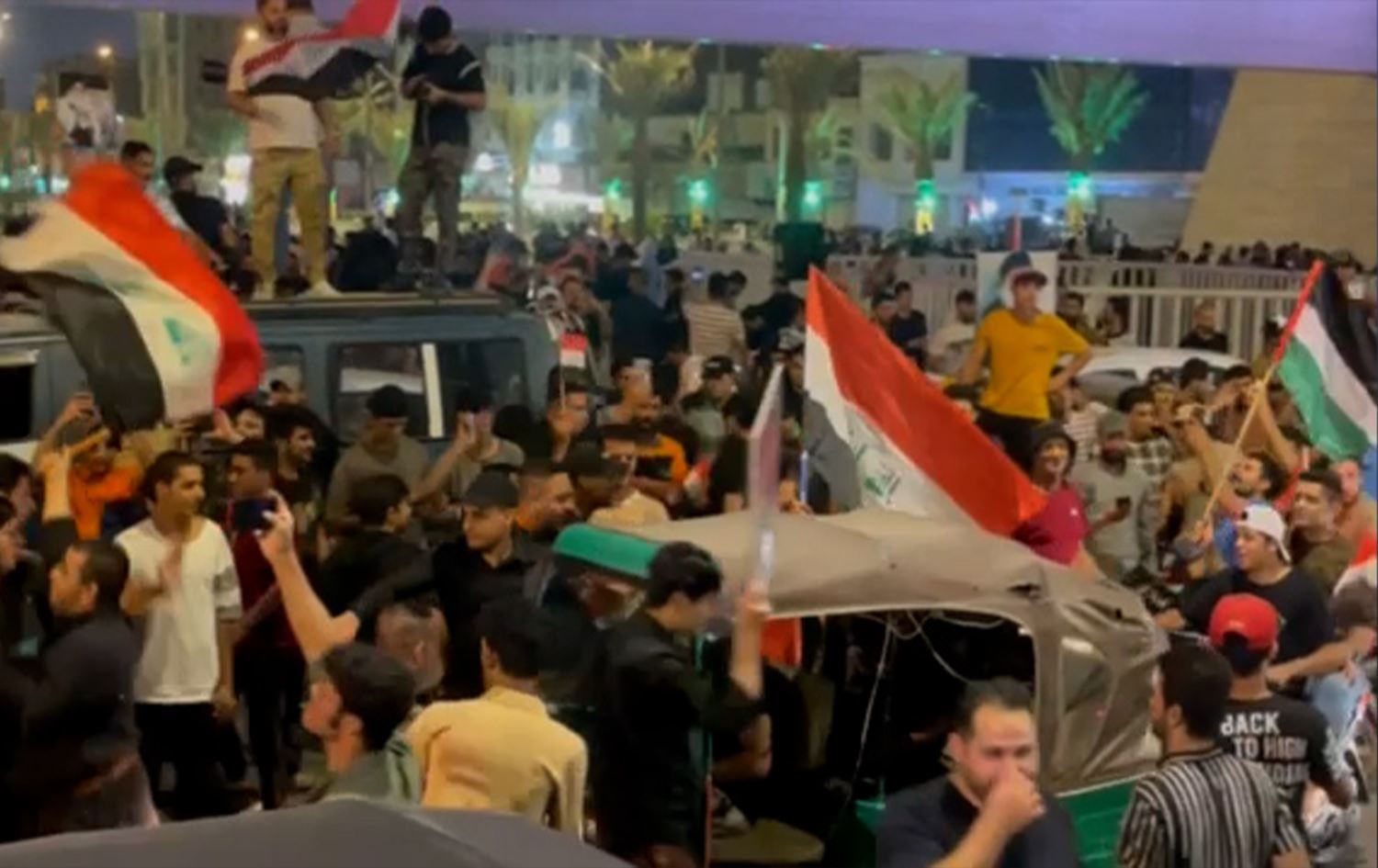 سەدان هاووڵاتی لە مەیدانی تەحریری بەغدا بۆ پاڵپشتیکردنی حەماس و فەلەستینییەکان دەستیان بە خۆپێشاندان کرد.