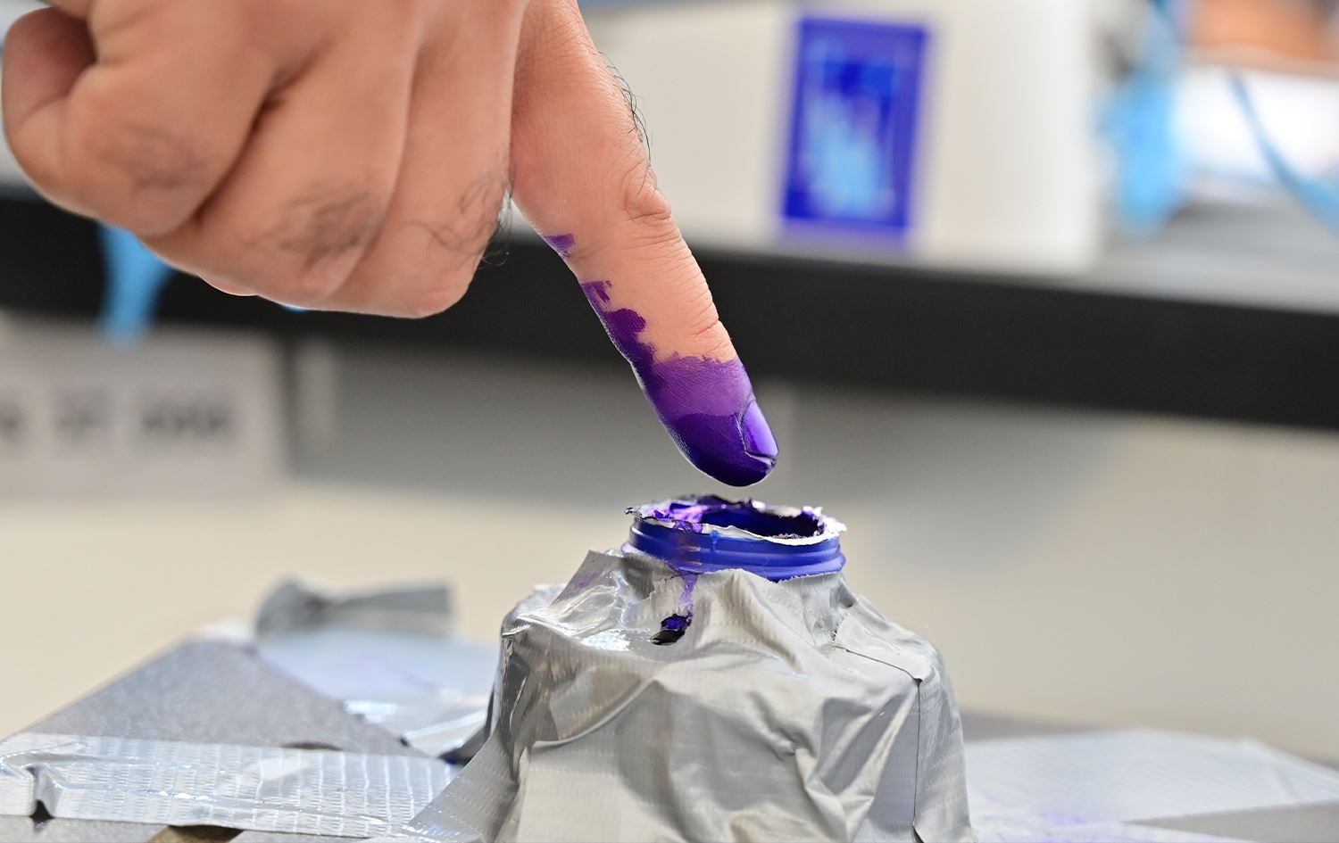دەنگدەرێک لە وێستگەیەکی دەنگدان لە هەڵبژاردنەکانی پێشوو پەنجەی مۆر دەکات. وێنە: بڵند تاهیر - رووداو/ئەرشیڤ