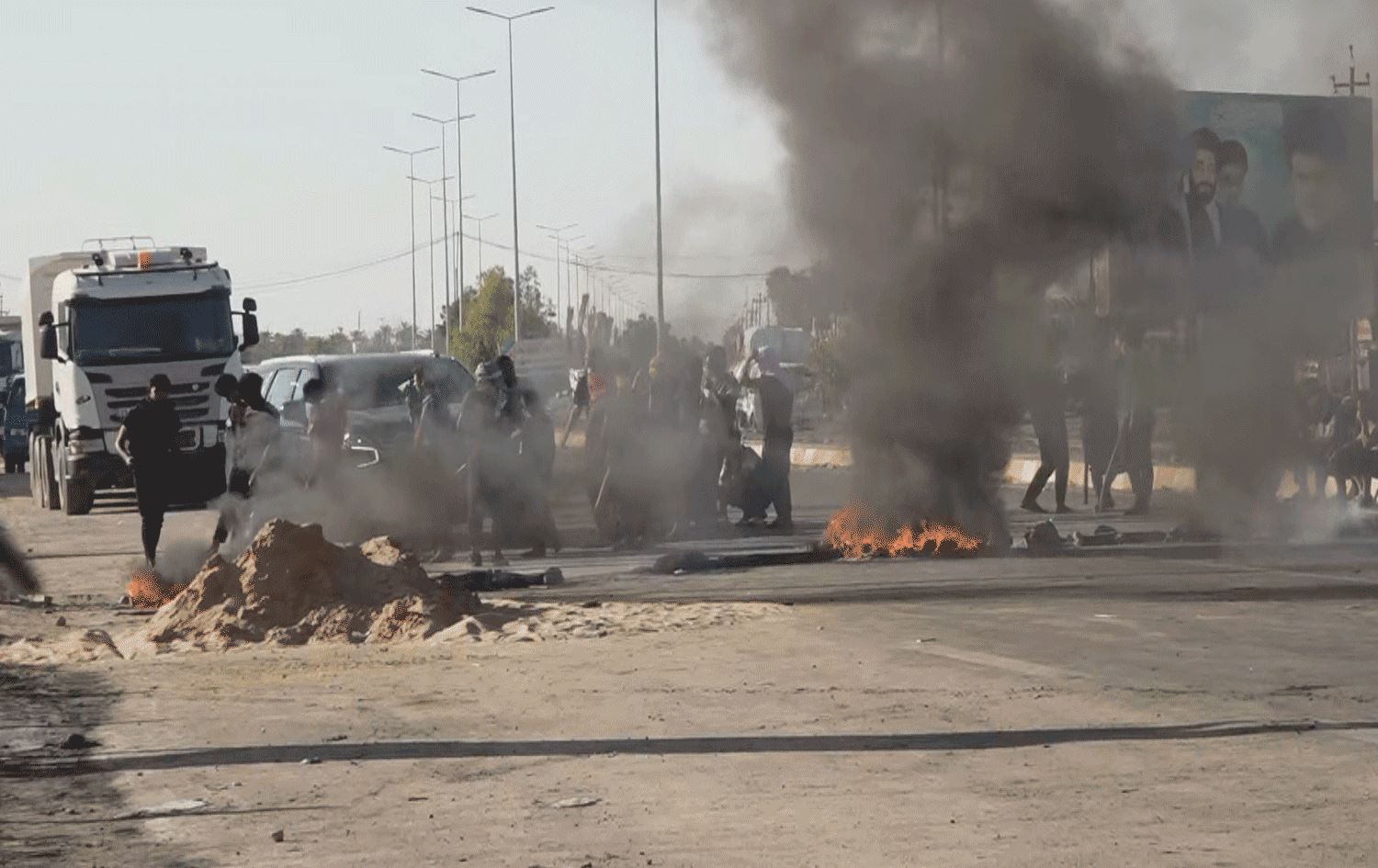 رێگەی سەرەکیی نێوان قەزاکە و بەشەکانی دیکەی پارێزگەی دیوانییەیان داخست و تایەیان تێدا سووتاند.