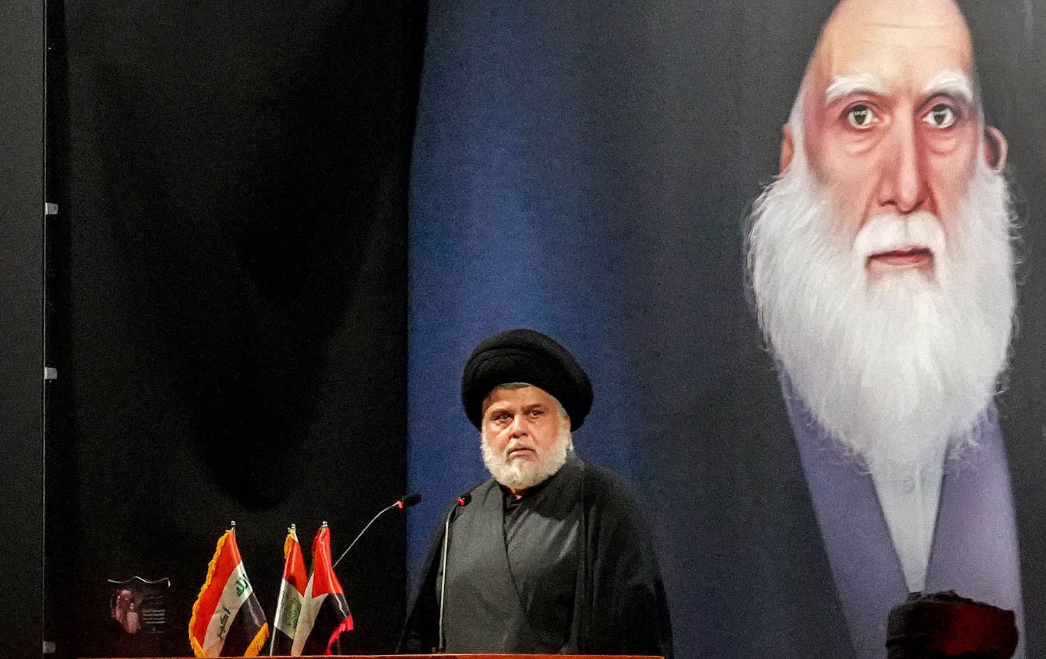 سەدر، کە لە دەرکەوتنیدا دڵی نەیارانی دەترسێنێت و دڵی لایەنگرانی خۆش دەکات، بۆ یەکەمجارە لەپاڵ ئاڵاکانی عێراق، فەلەستین، ئاڵای رەوتە نوێیەکەی، "رەوتی نیشتمانیی شیعە" دەرکەوت.