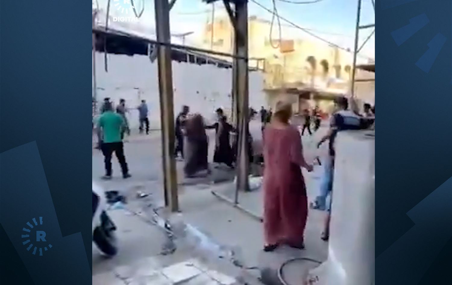 وەکو لەو گرتە ڤیدیۆییەی لە تۆڕەکۆمەڵایەتییەکان بڵاوکراوەتەوە، دەردەکەوێت؛ پیاو و ژن و منداڵ بە دار و ئاسن بە تووندی لە یەکدی دەدەن.