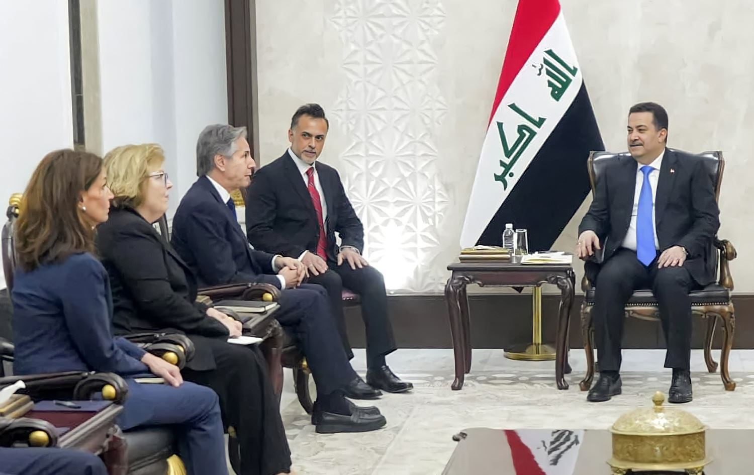 باڵاترین دیپلۆماتی ئەمریکا لەگەڵ محەممەد شیاع سوودانی، سەرۆکوەزیرانی عێراق کۆبووەوە. بلینکن گوتی: "بە سەرۆکوەزیرانی عێراقم گوت، ئێمە پابەندین بە کارکردن بۆ ئاسایشی و سەروەریی عێراق، هەروەها بۆ ئەوەی دڵنیابینەوە کە عێراق بەهێز و پارێزراوە."