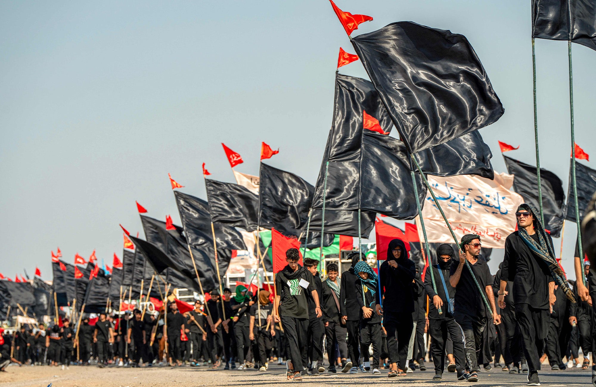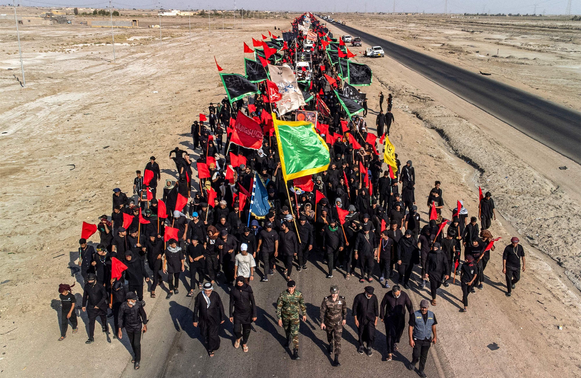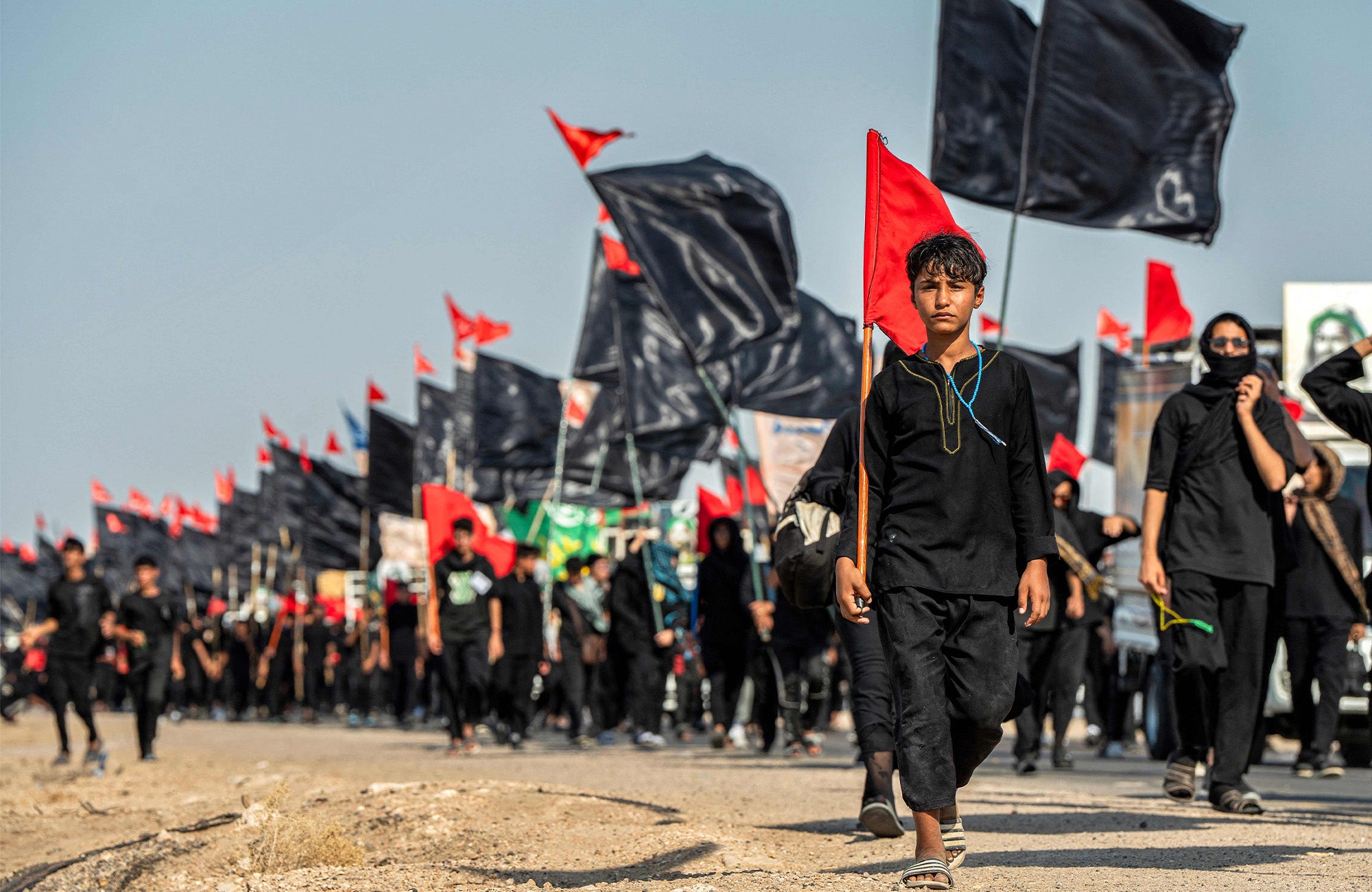 وێنەکان تایبەتن بە زیارەتکارانی شاری ناسریە لە پارێزگای زیقاری عێراق کە بەرەو کەربەلا دەچن. وێنە: Asaad NIAZI / AFP