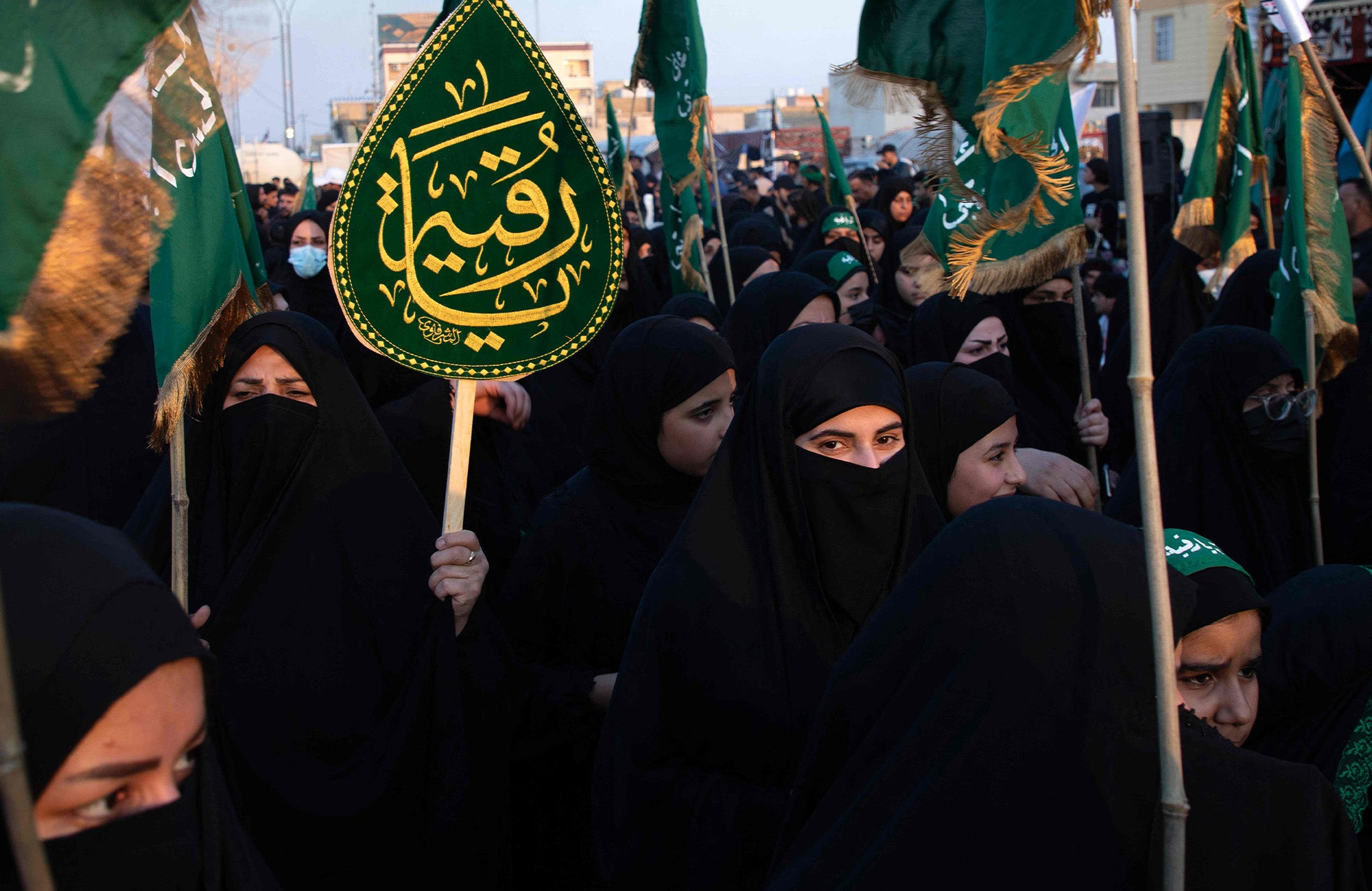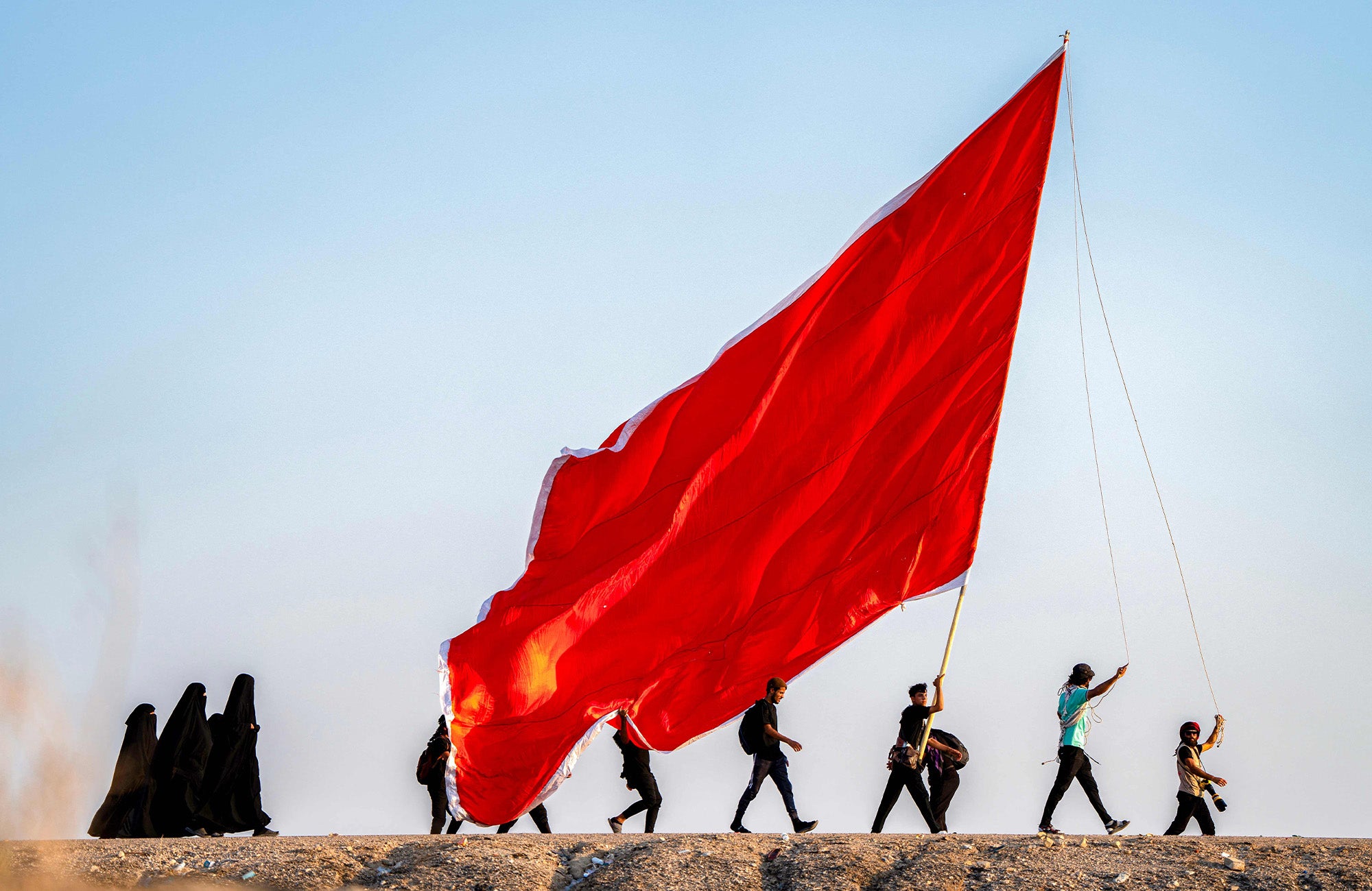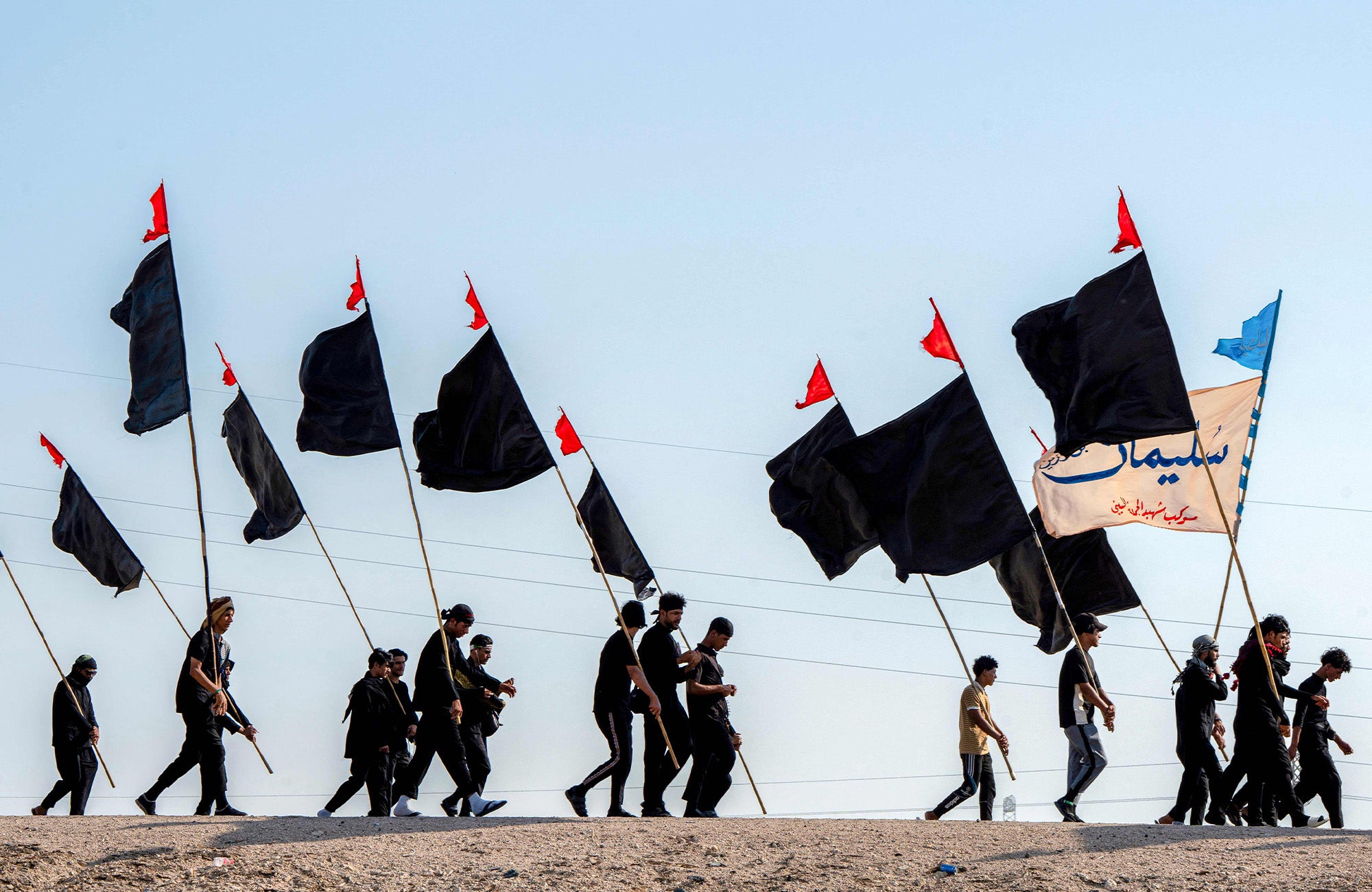 وێنەکان تایبەتن بە زیارەتکارانی شاری ناسریە لە پارێزگای زیقاری عێراق کە بەرەو کەربەلا دەچن. وێنە: Asaad NIAZI / AFP