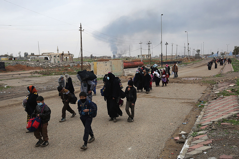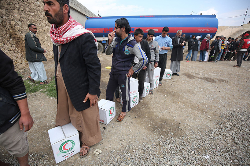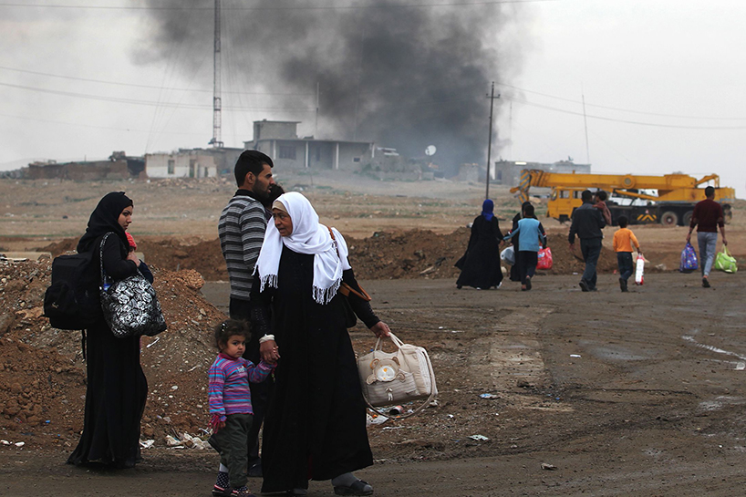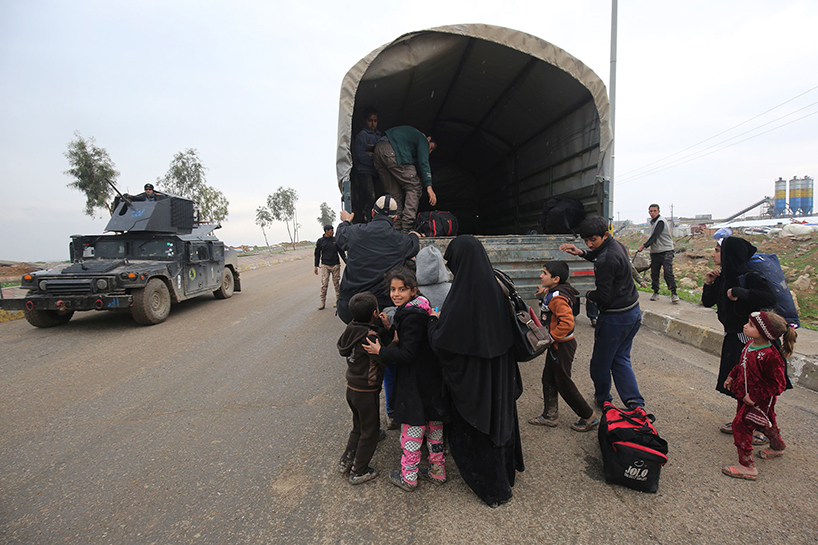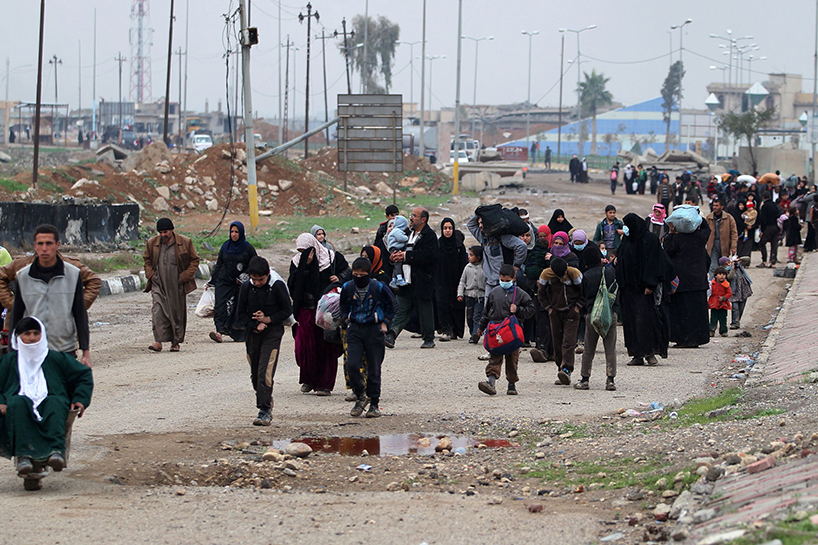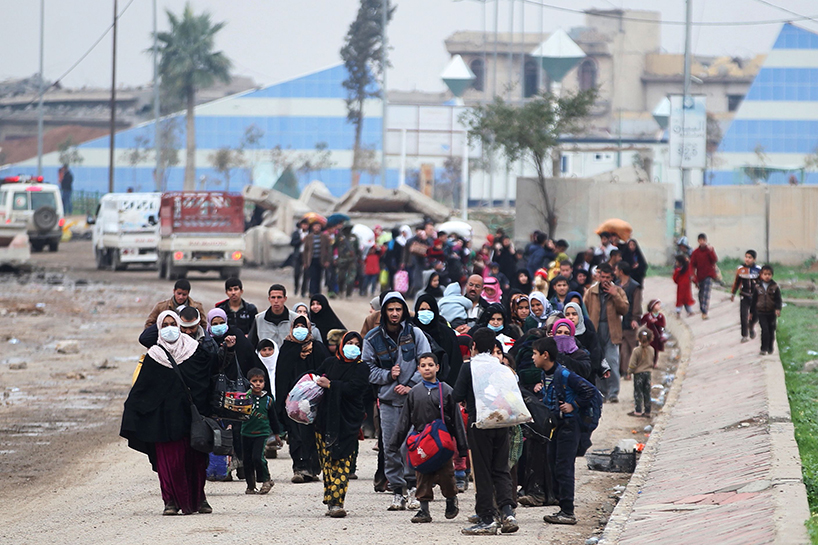 بەهۆی شەڕی قورسەوە لەلای راستی موسڵ، خەڵکی گەڕەکە کۆنترۆڵکراوەکان ناوچەکانیان چۆڵدەکەن و، ئاوارە دەبن، بەشێکیشیان پێش ئاوارەبوون لەلایەن رێکخراوە خێرخوازییەکانەوە بڕێک یارمەتییان پێدەگات.