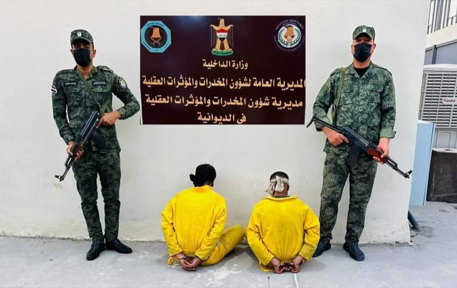 وەزارەتی ناوخۆی عێراق لە راگەیێندراوێکدا ئاشکرایکرد: "هێزێکی پۆلیسی پارێزگای دیوانییە کە لە پۆلیسی کاروباری مادەی هۆشبەر و کارتێکەرە عەقڵییەکان و هەواڵگریی پارێزگاکە پێکهاتبوون، دوو بازرگانی مادەی هۆشبەریان دەستگیرکرد کە چوار درۆن و بڕێک مادەی هۆشبەر و چەکیان پێبووە."