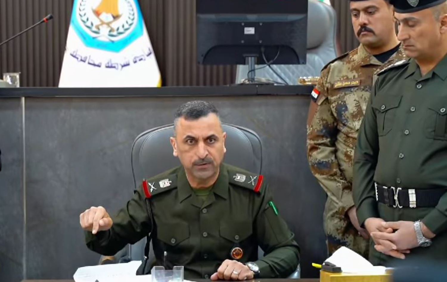 ڤیدیۆی قسەکانی ليوا روكن محەممەد کازم عەتیە، فەرماندەى پۆلیسی دیالە لە پەیجى فەرمیى پۆلیسی پارێزگاکە بڵاوکراوەتەوە.